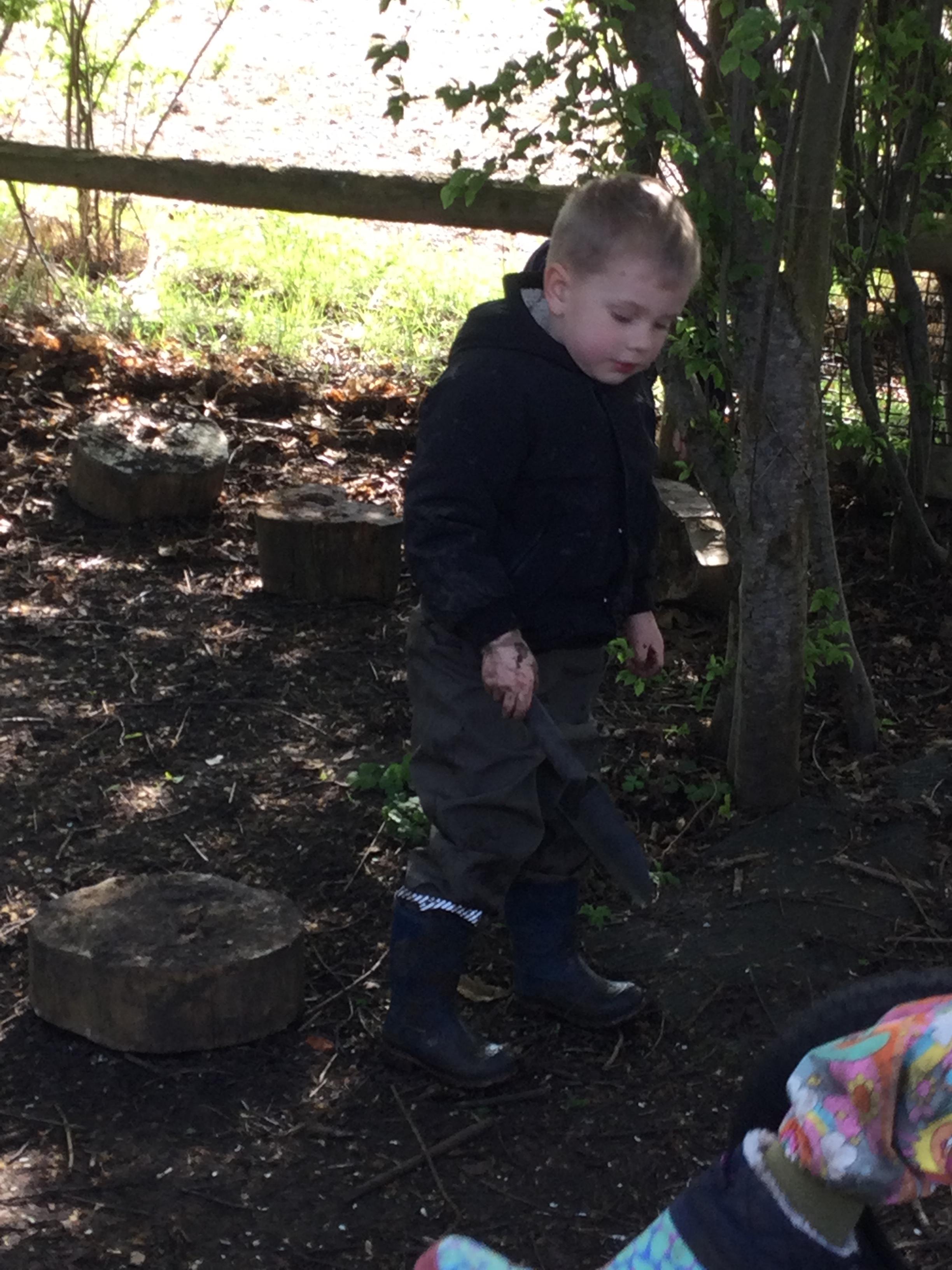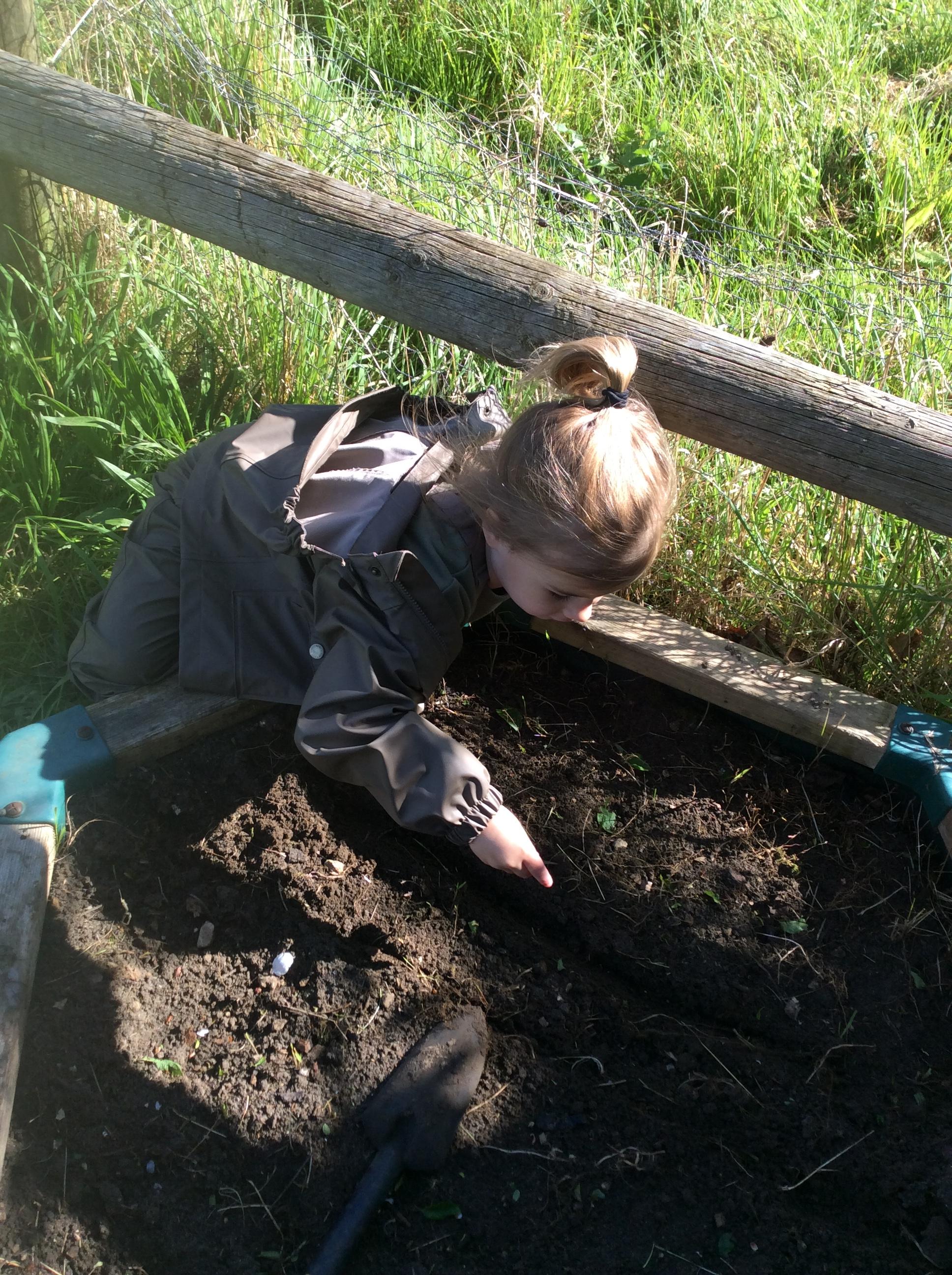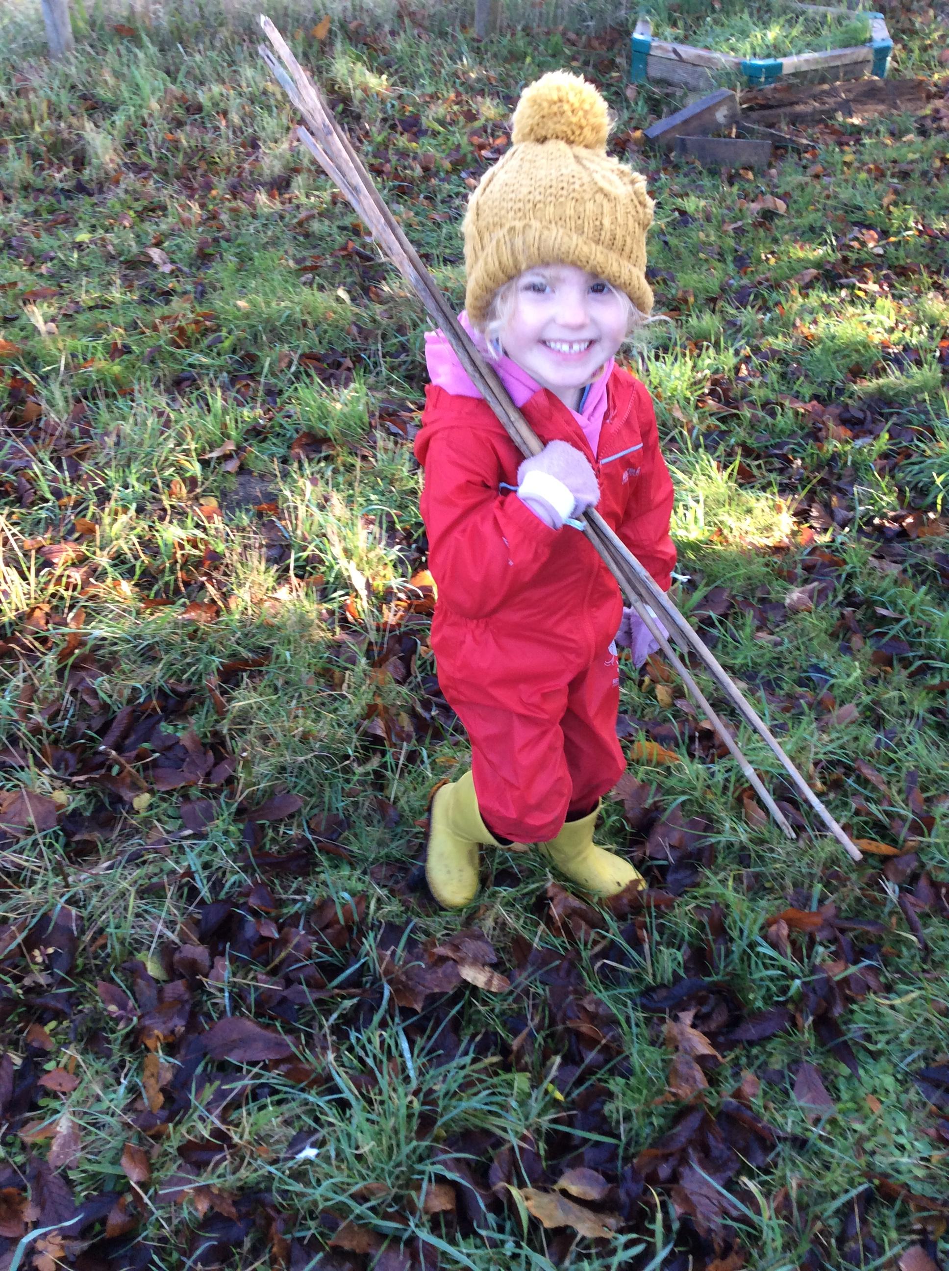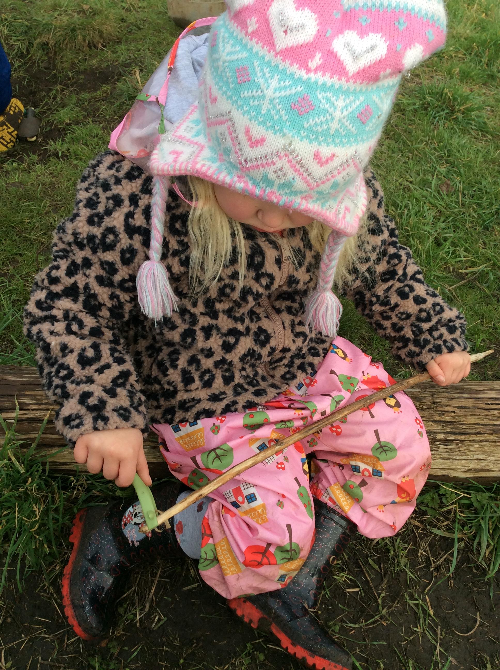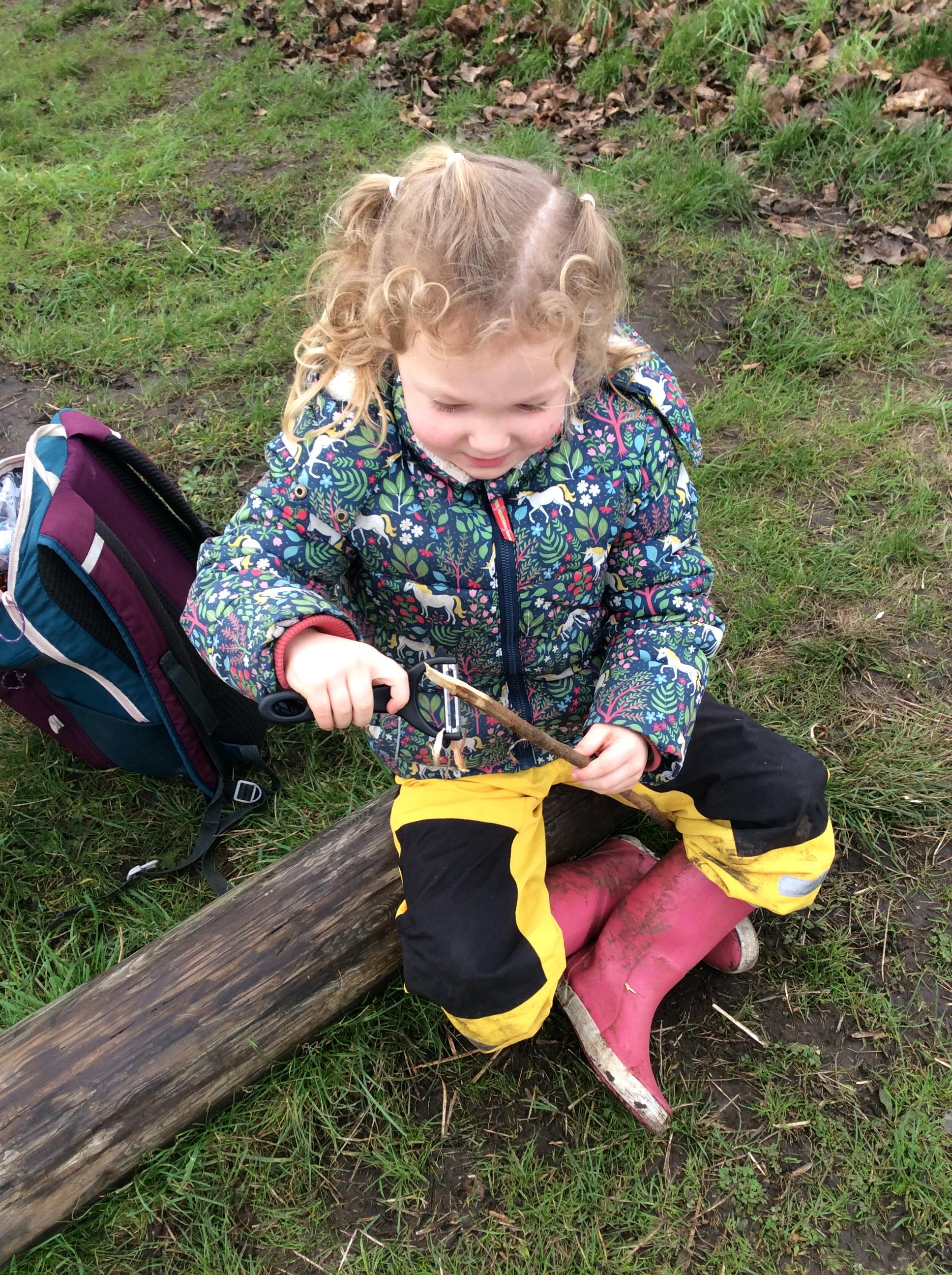 Once we gathered at the allotment, we settled on the logs, discussing safety rules and singing our Forest School song together.