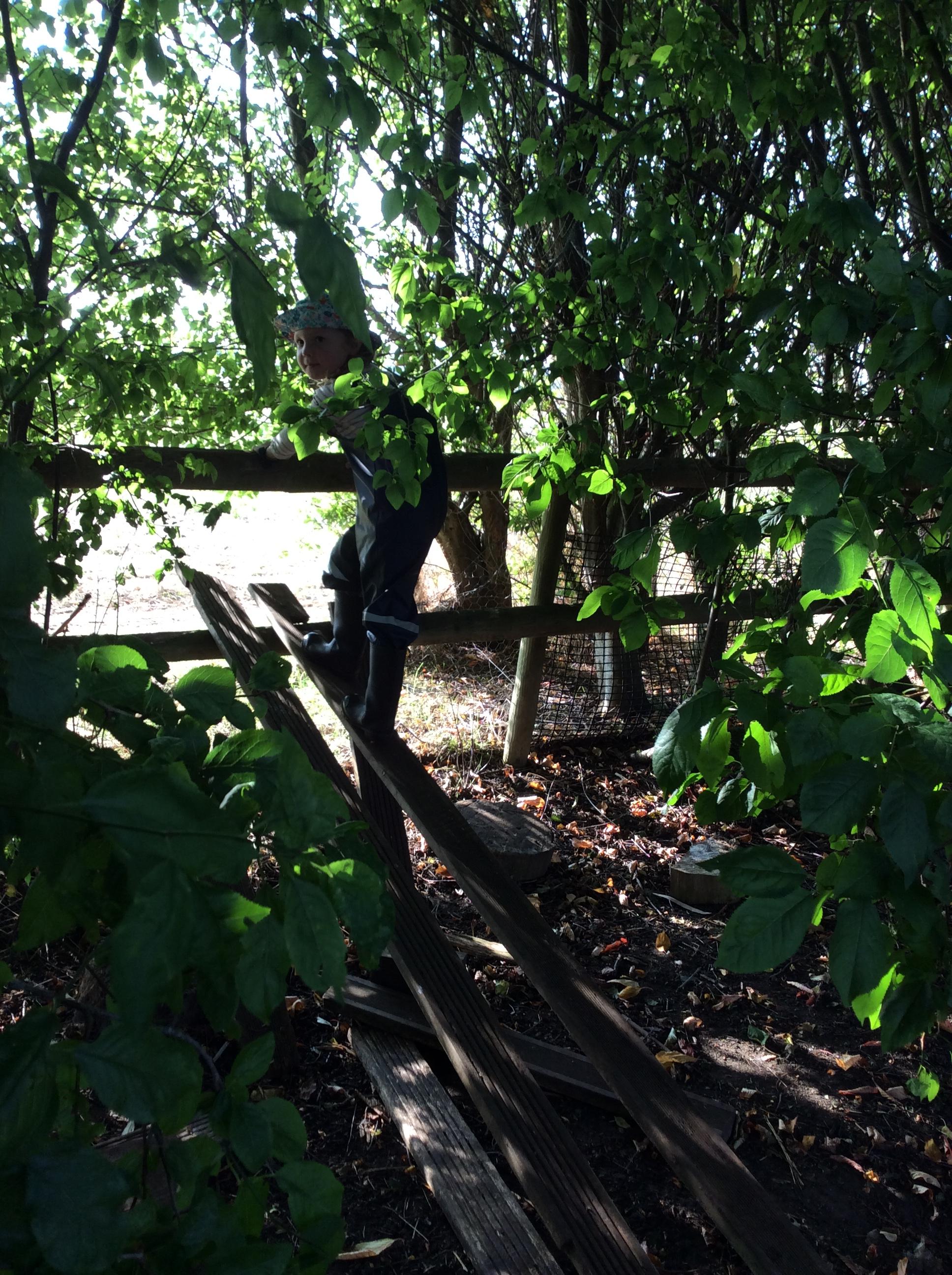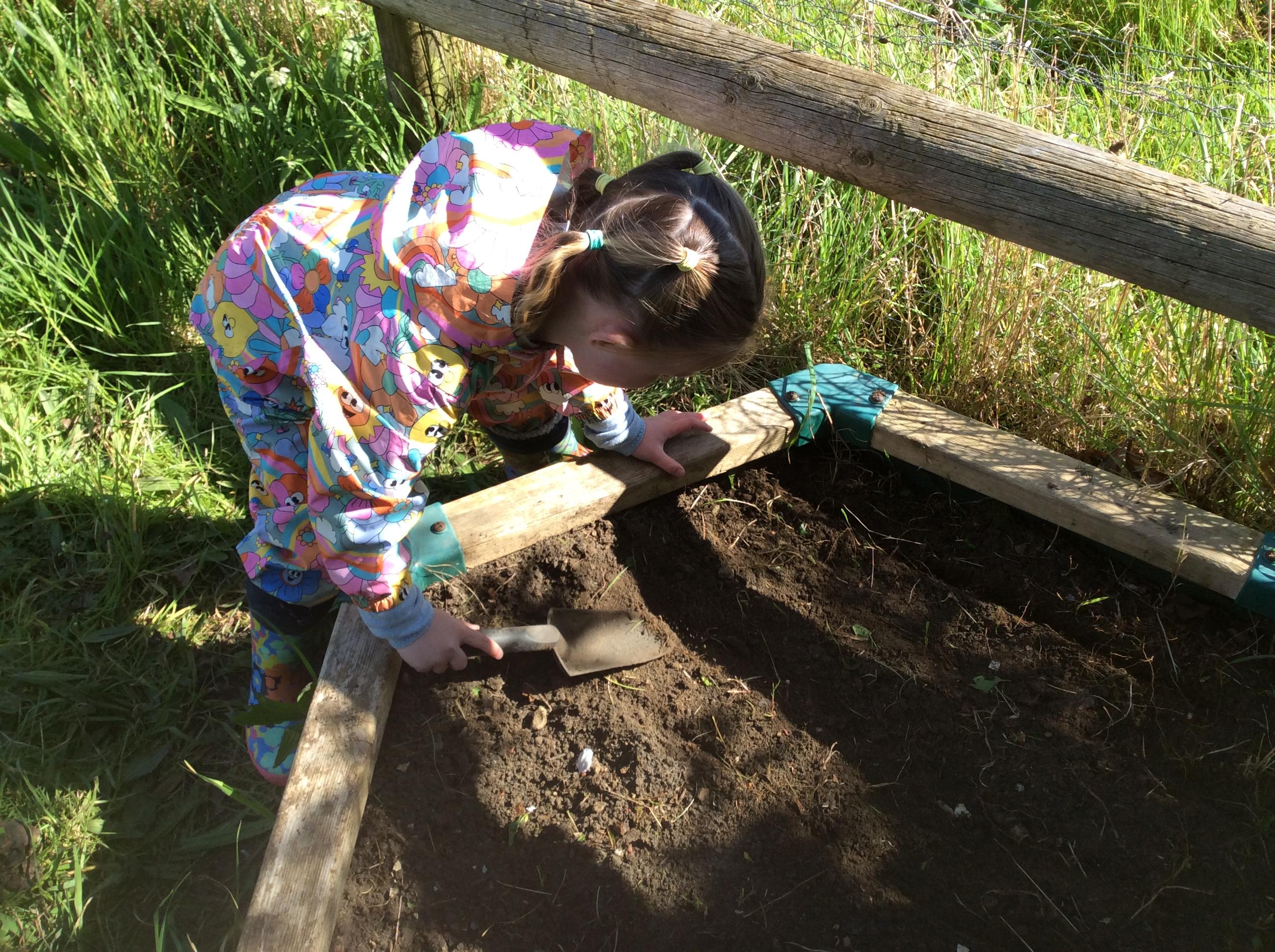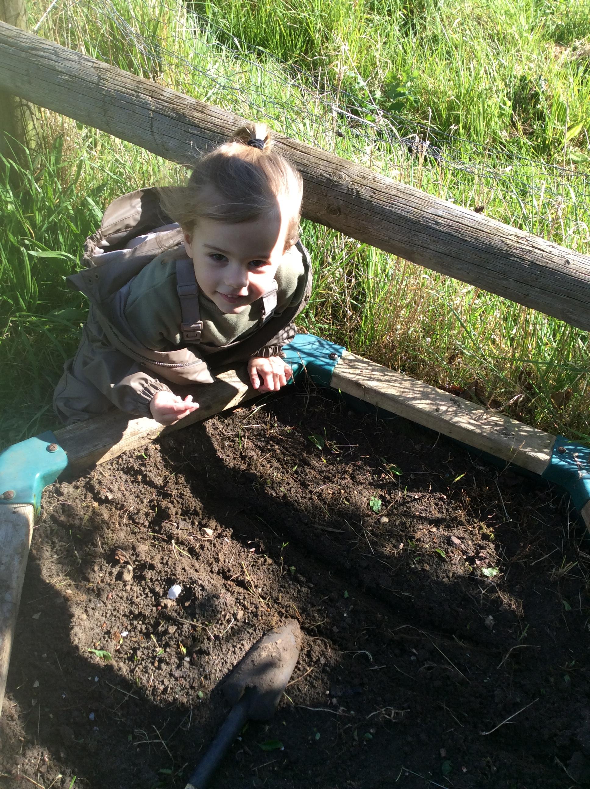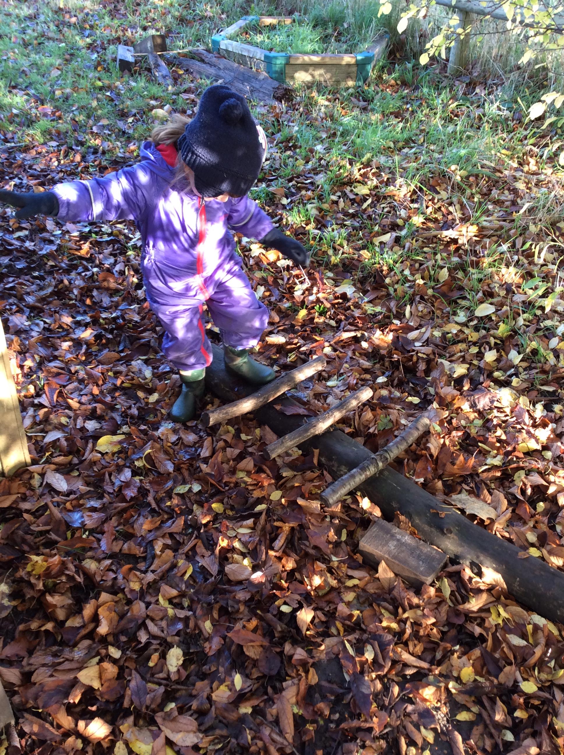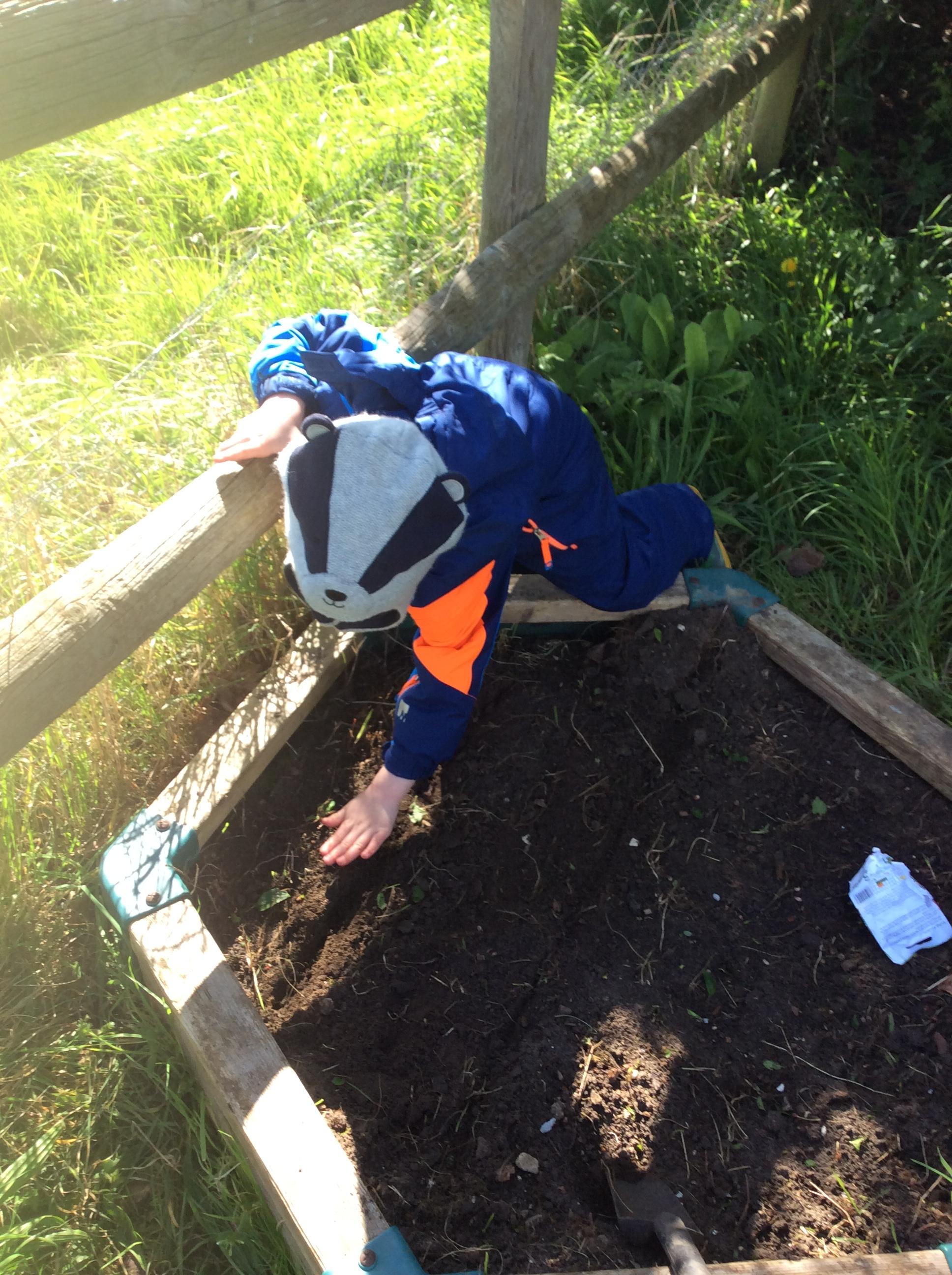 Once we gathered at the allotment, we settled on the logs, discussing safety rules and singing our Forest School song together.