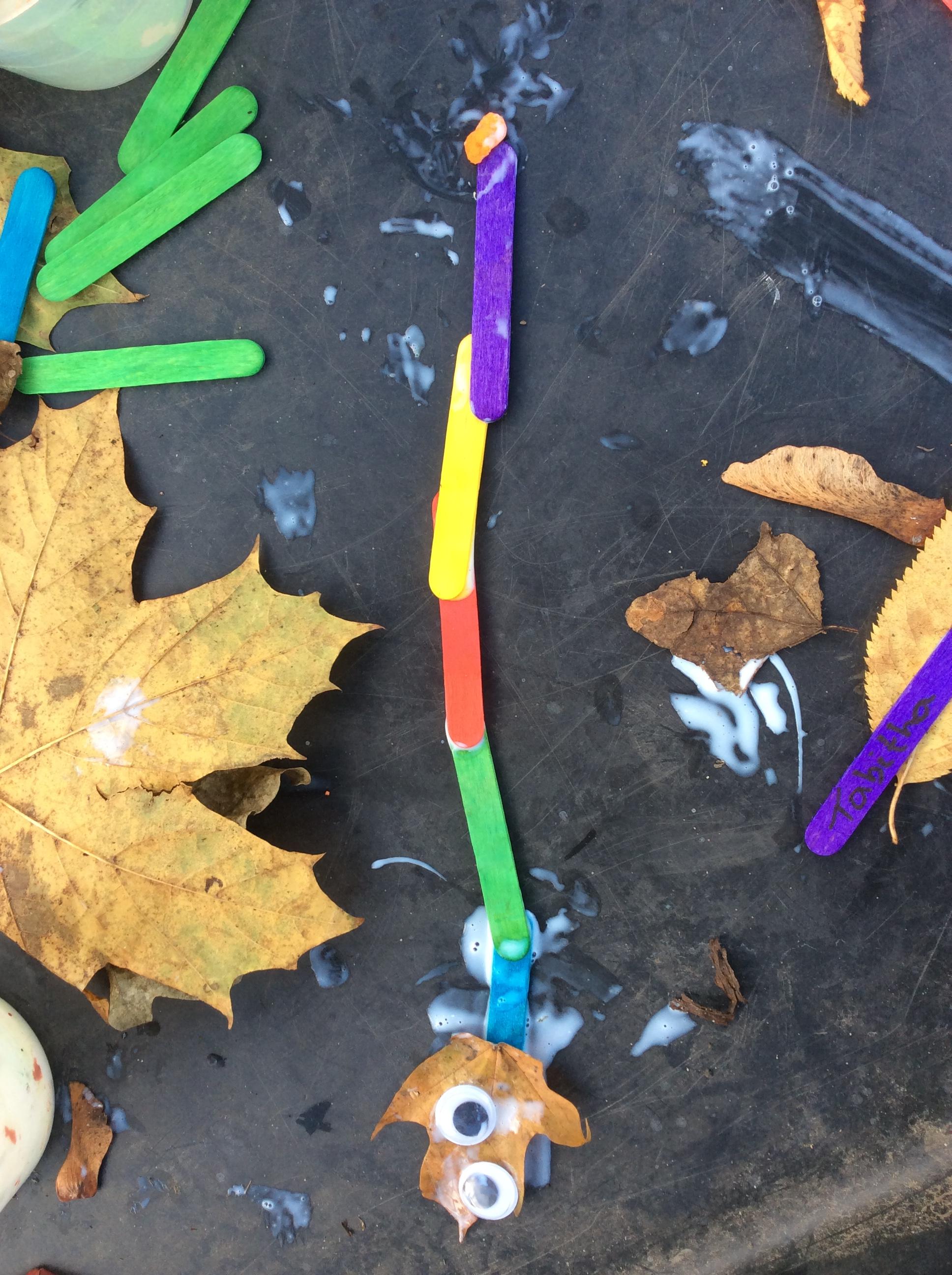 During term 2, both little Acorns and big Acorns learned about autumn at Forest School. We read the story 'We're Going on a Leaf Hunt' and revisited what we can observe outdoors during the autumn season. Additionally, we used our imagination to create leaf puppets.