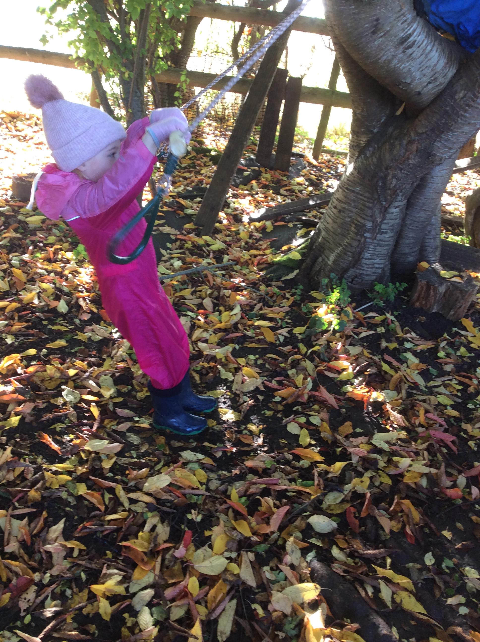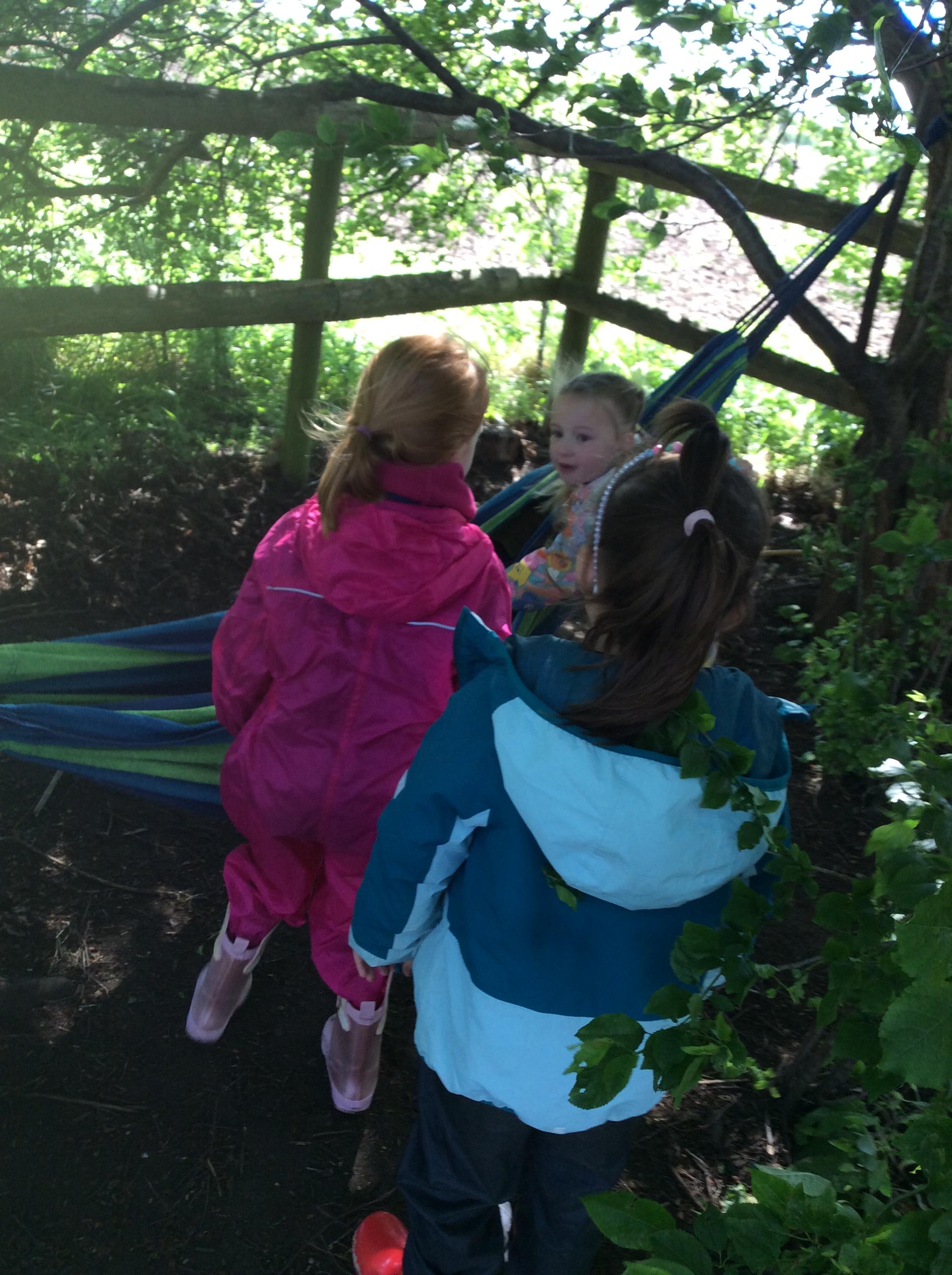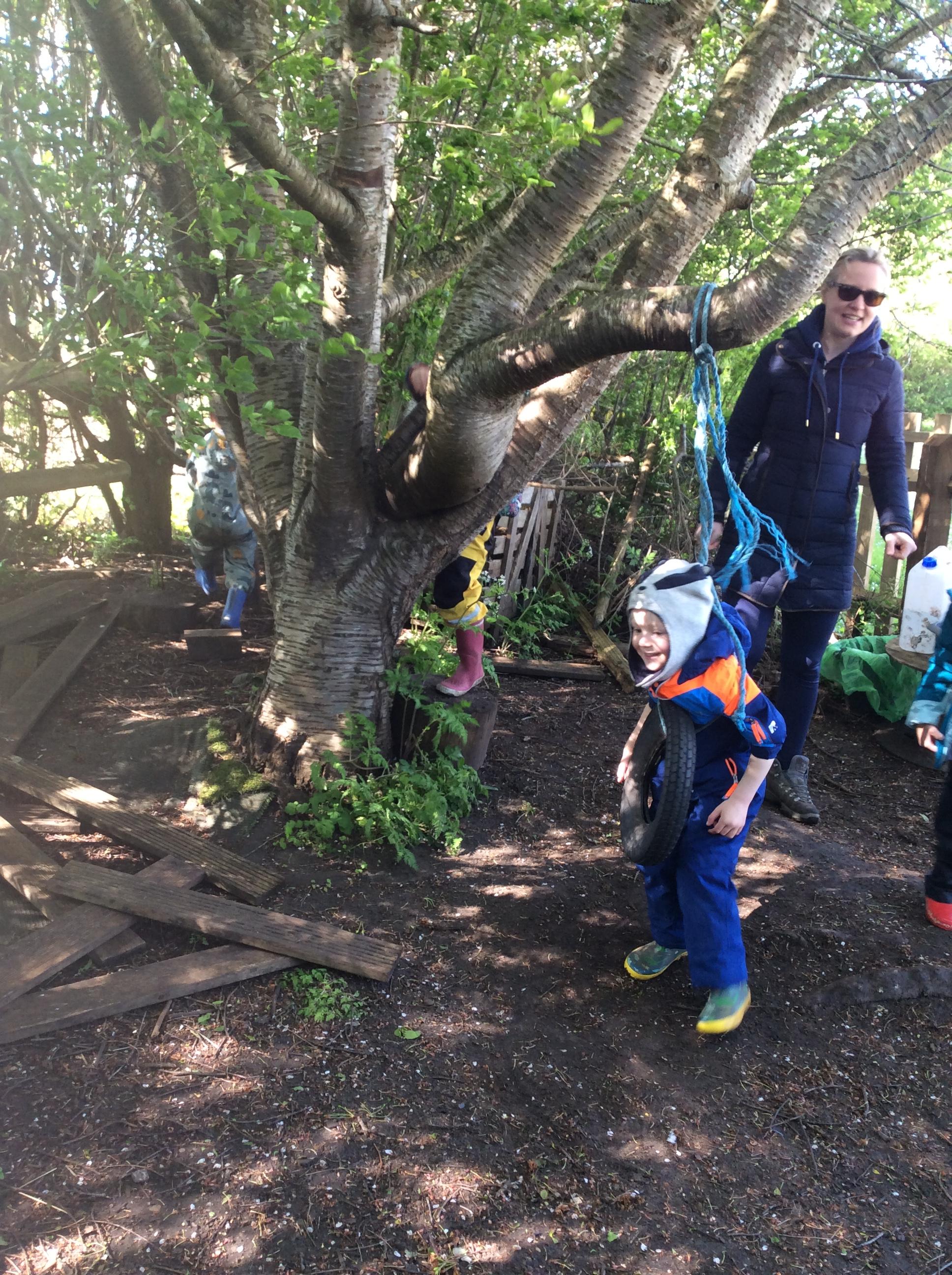 The main focus of the session was allowing the children to freely explore the allotment. We were proud to observe excellent turn-taking and patience as they took turns climbing trees, trying the tyre swing, and relaxing in the hammock. The children also showed kindness and good communication towards each other.