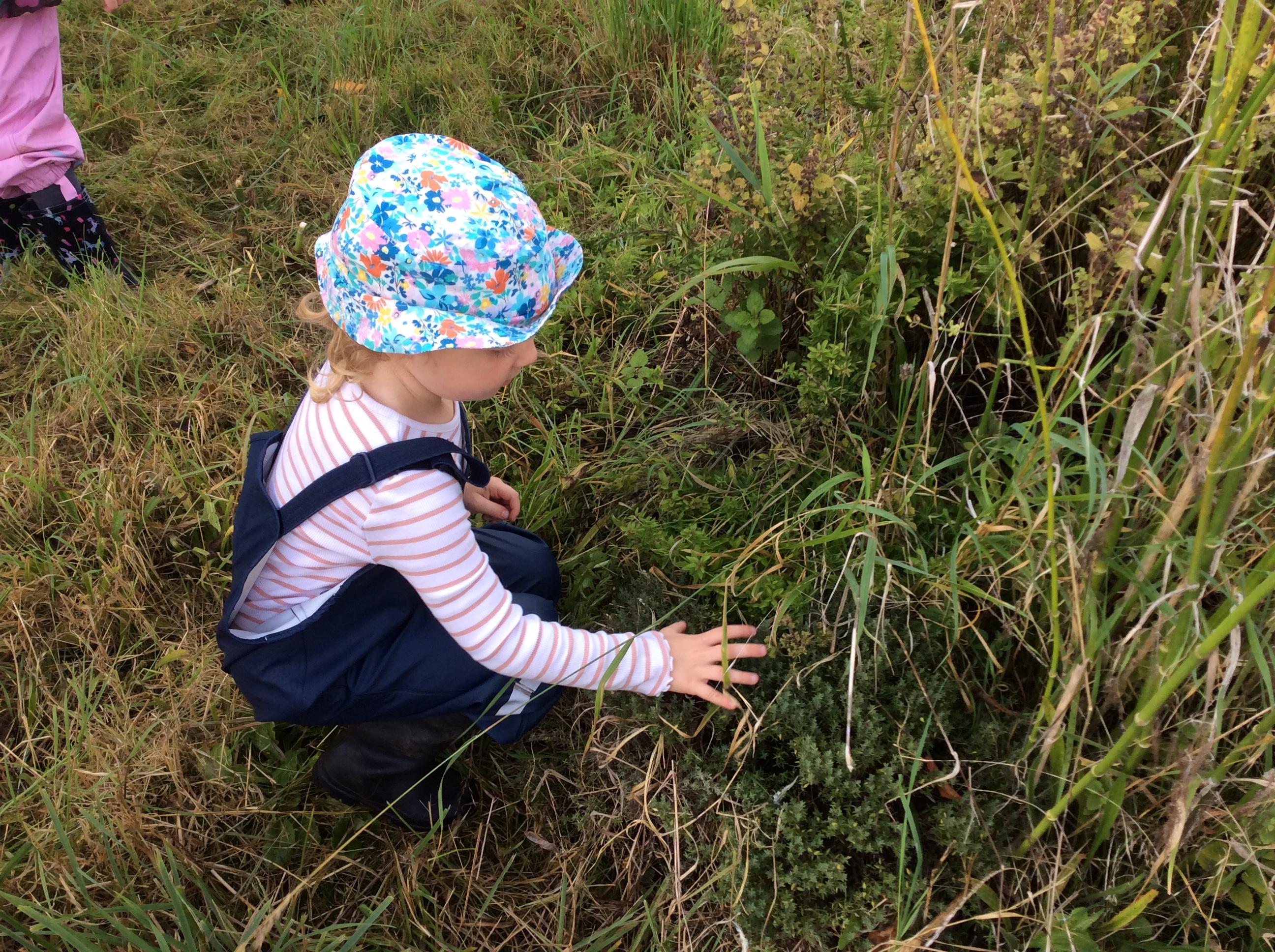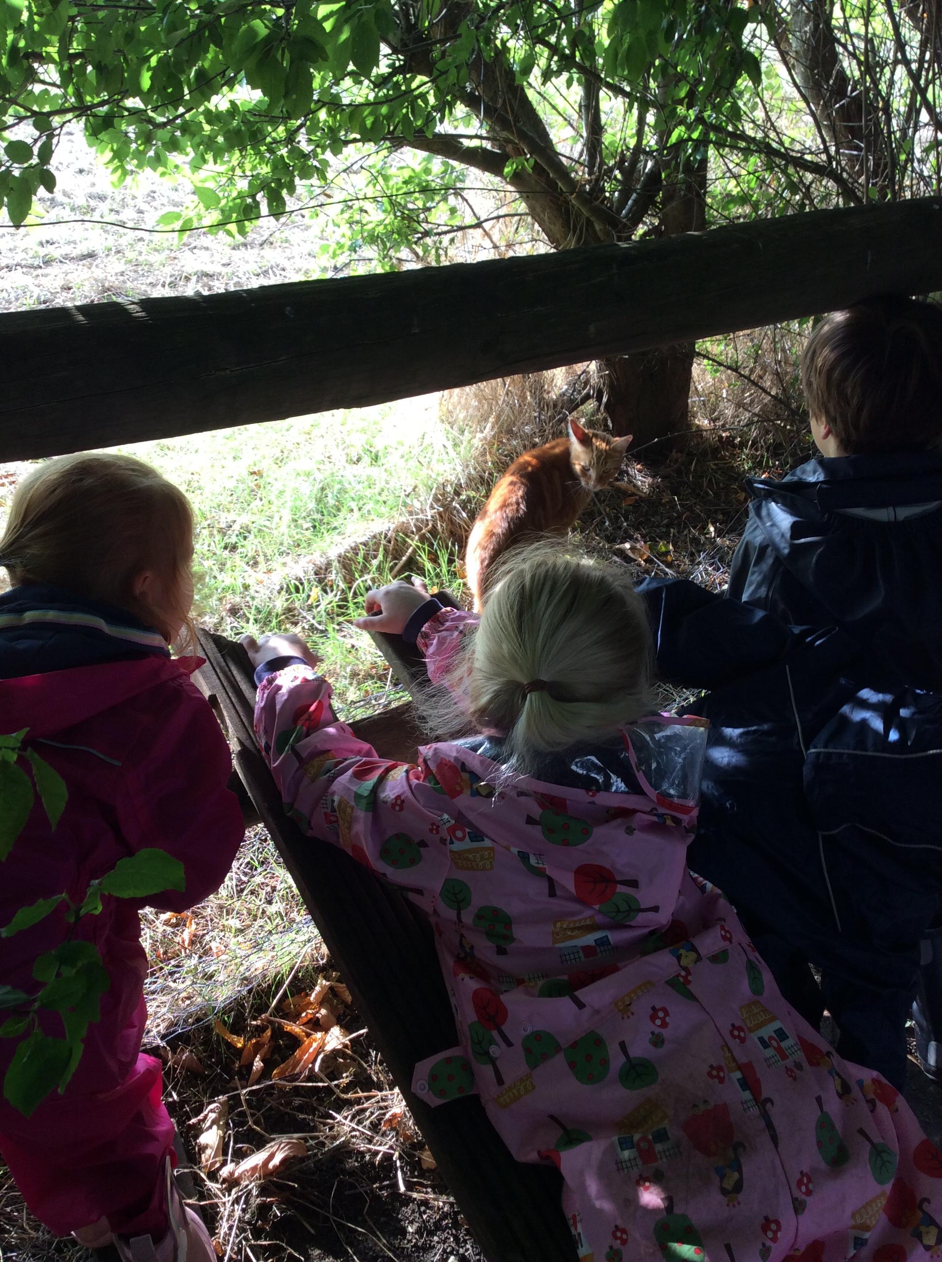 Some of the children discovered the aromatic plants such as thyme, lemon balm, and mint. Additionally, we encountered worms and snails, and of course, Forest School wouldn't be complete without a visit from “Sunny the cat."