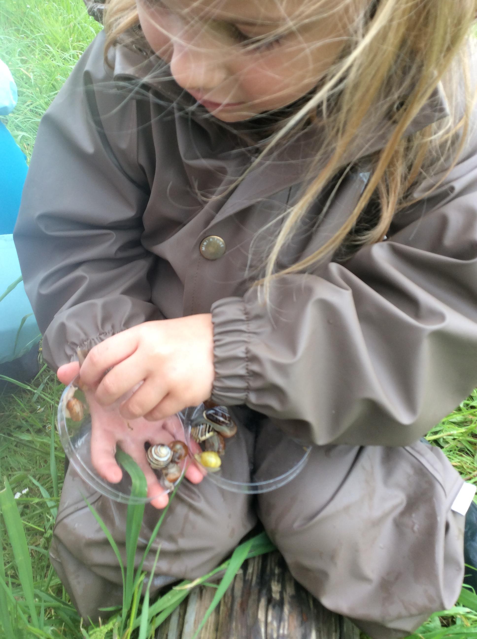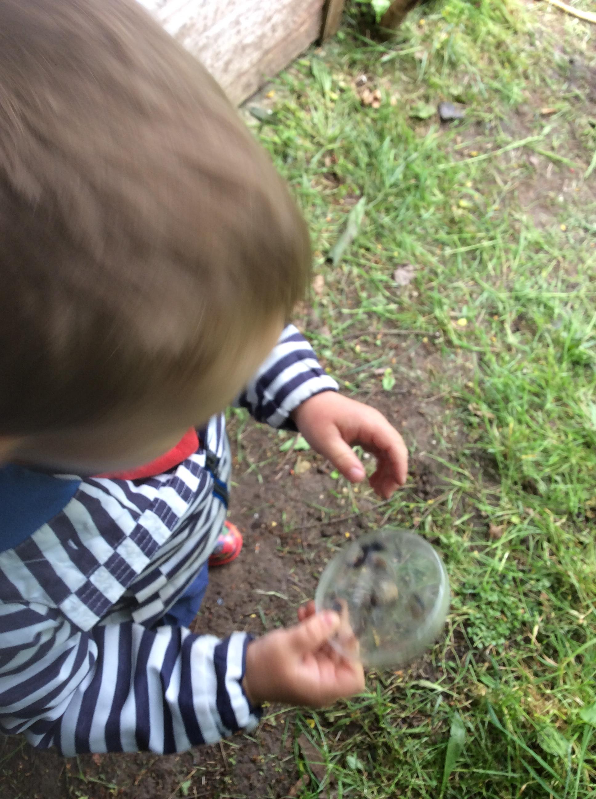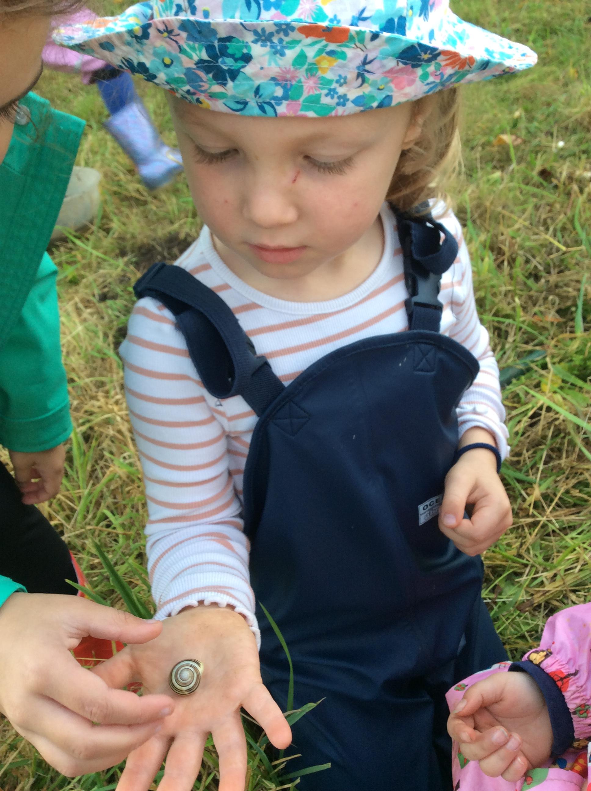 Another highlight was our careful bug hunt. Big Acorns did theirs after a rainy day and found more than 30 snails. Some children decided to install them in the tuff tray and observed the snails racing against each other. It was a lot of fun.