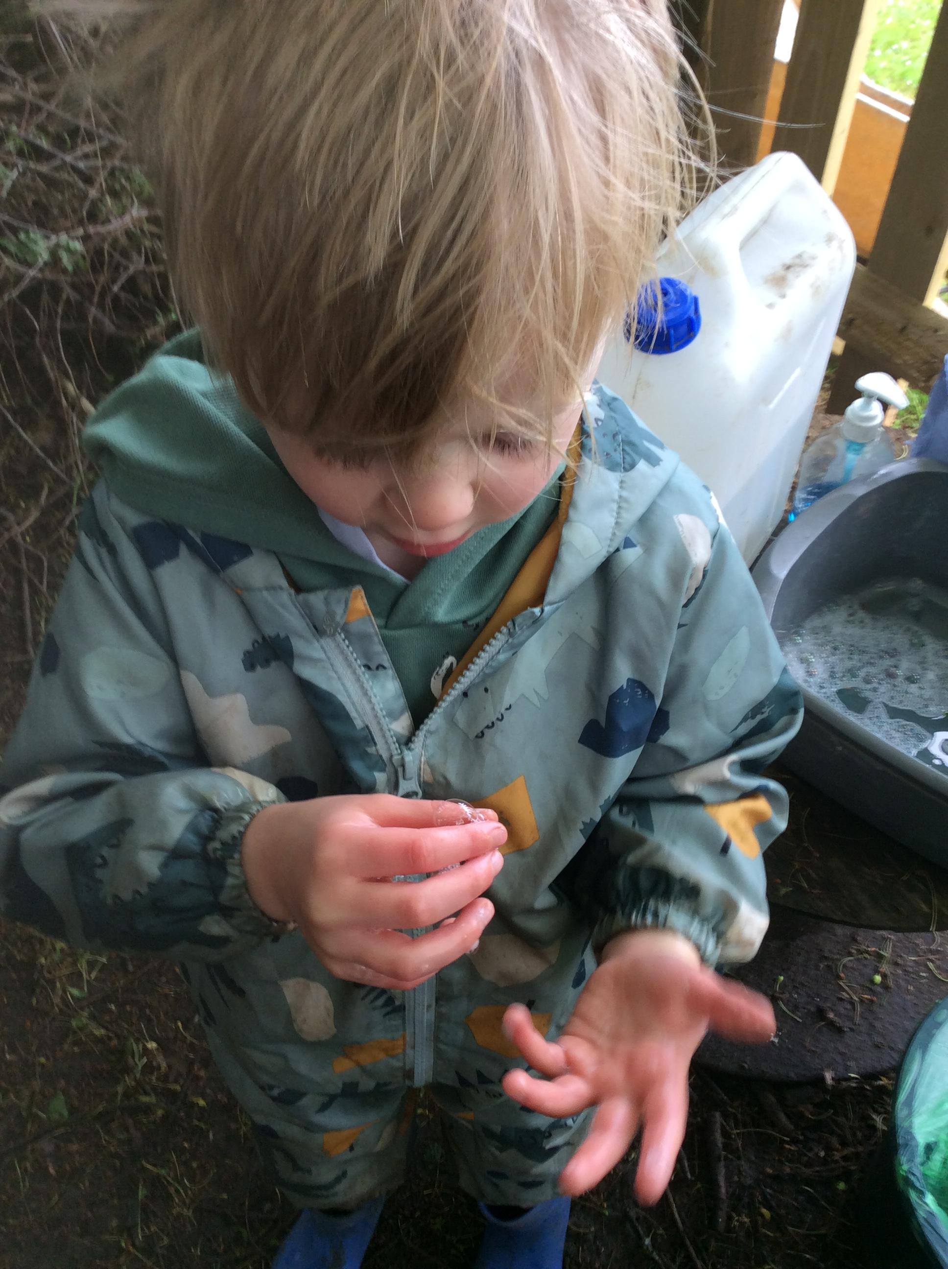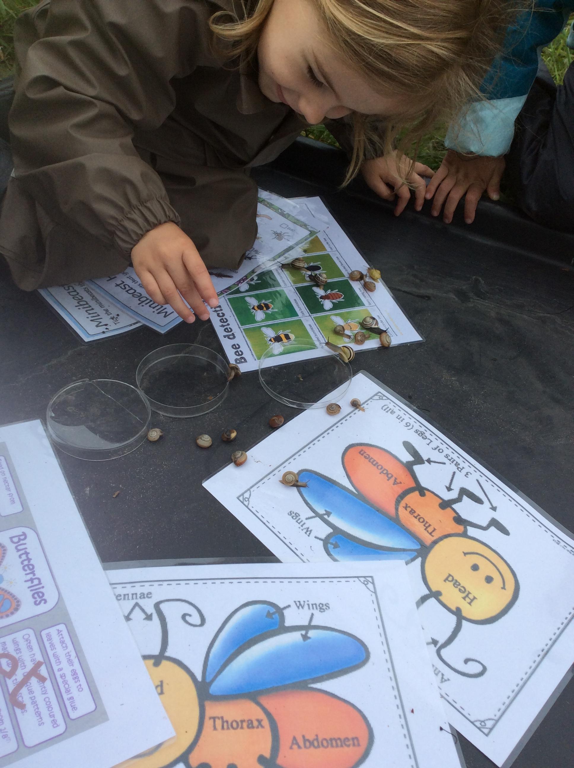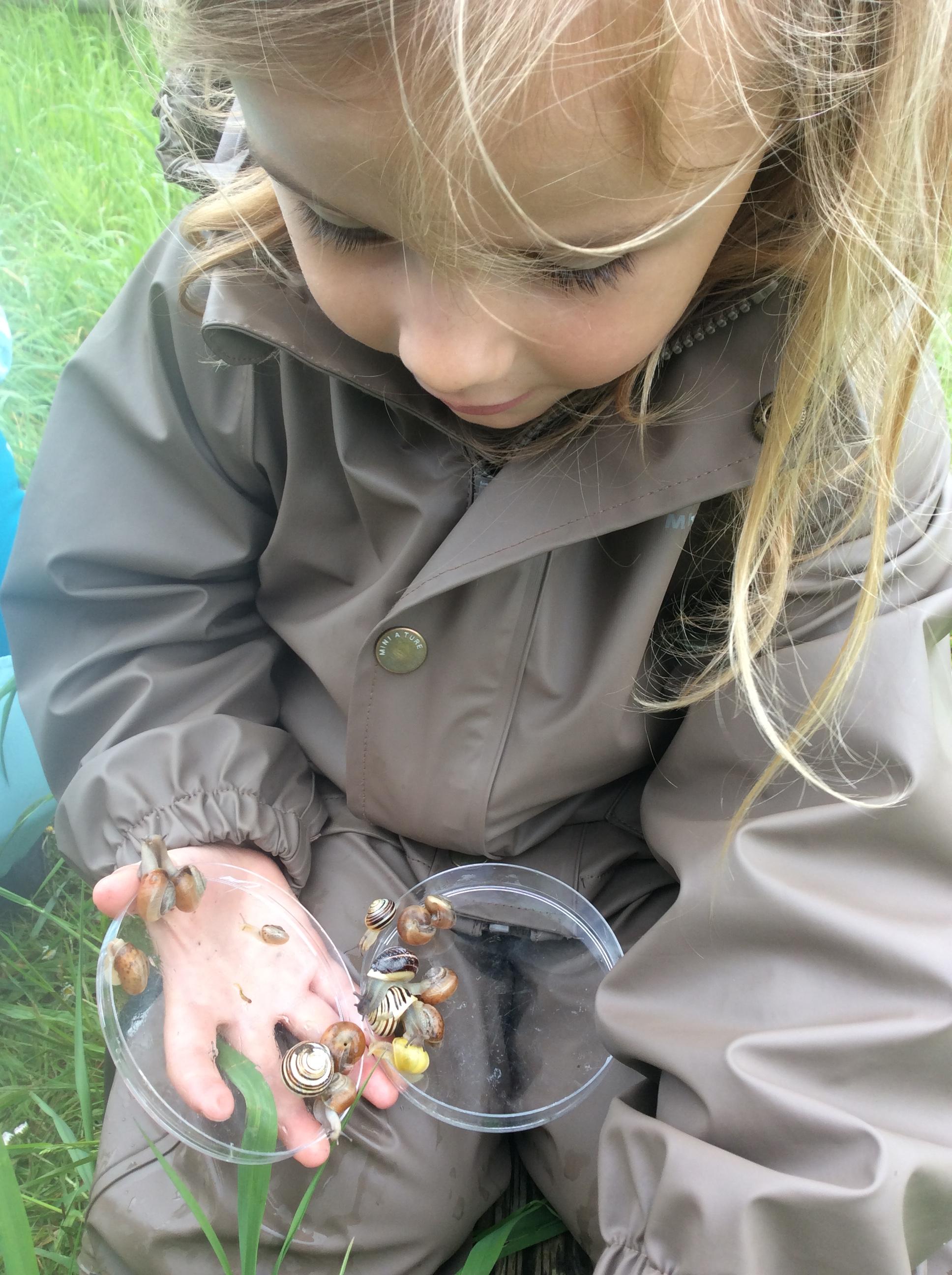 Another highlight was our careful bug hunt. Big Acorns did theirs after a rainy day and found more than 30 snails. Some children decided to install them in the tuff tray and observed the snails racing against each other. It was a lot of fun.