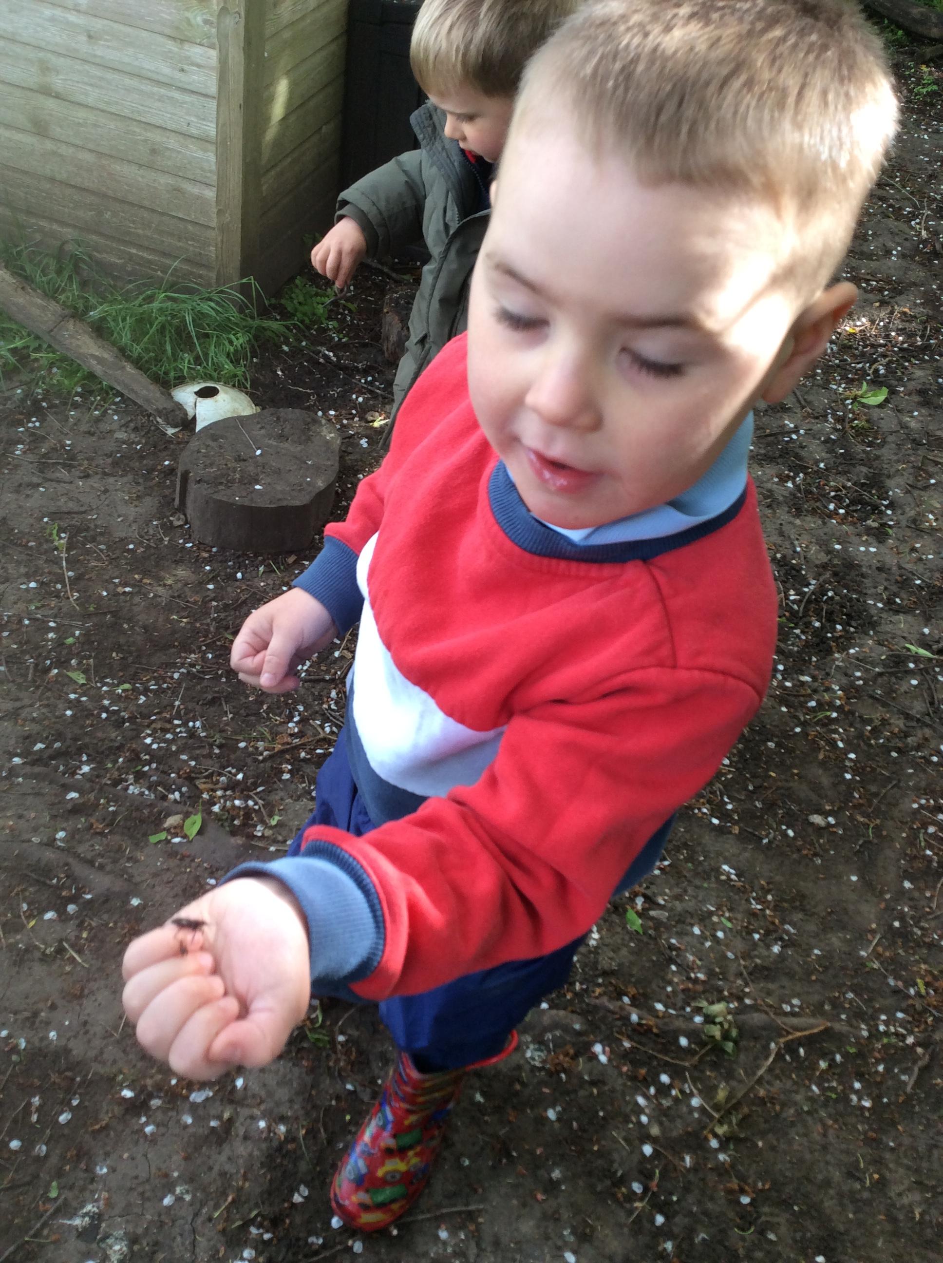 Little Acorns found millipedes, centipedes, beetles, woodlouse, and an ant nest. I can reassure you that all the little creatures were treated with respect and freed at the end of the session.