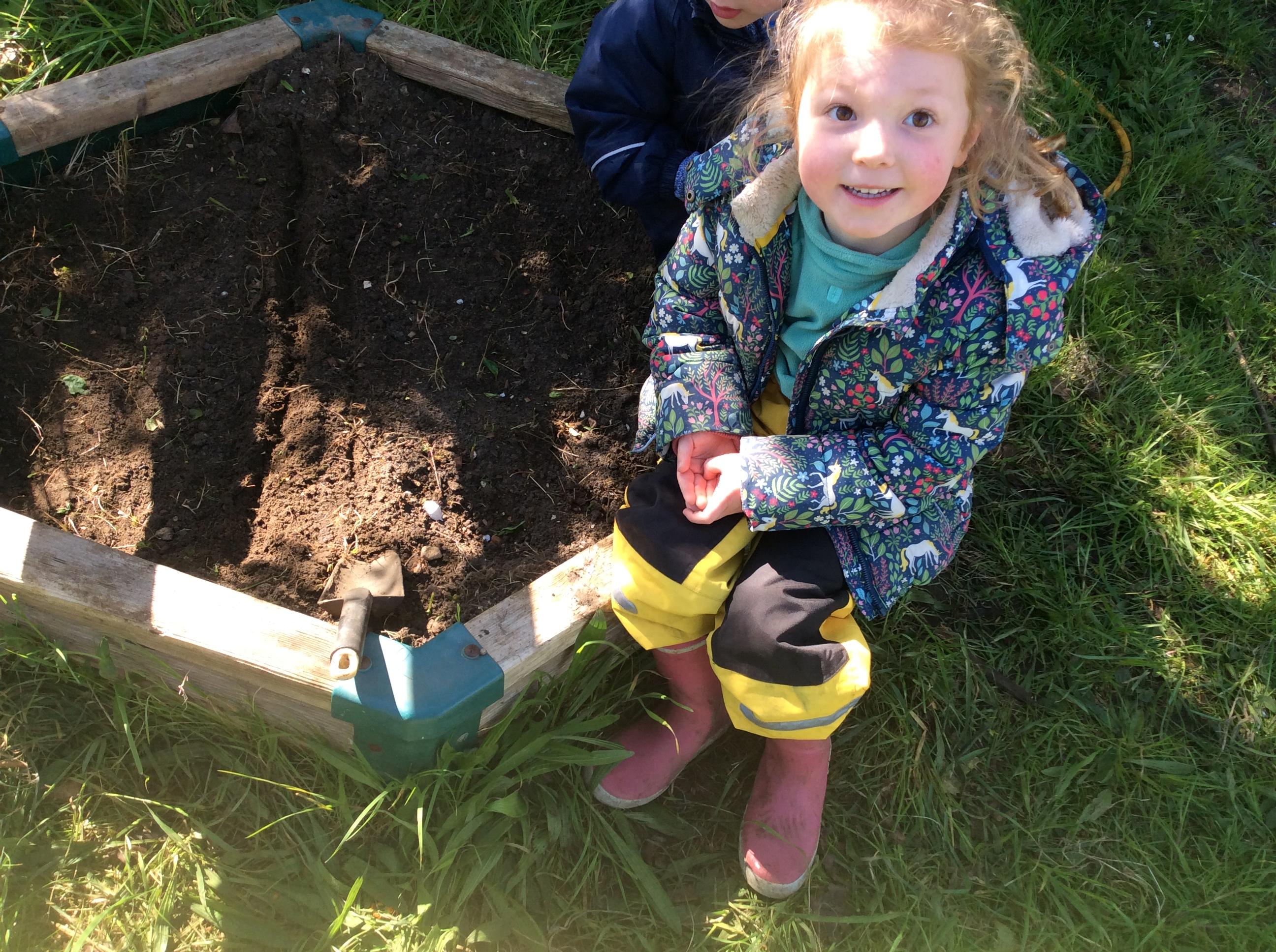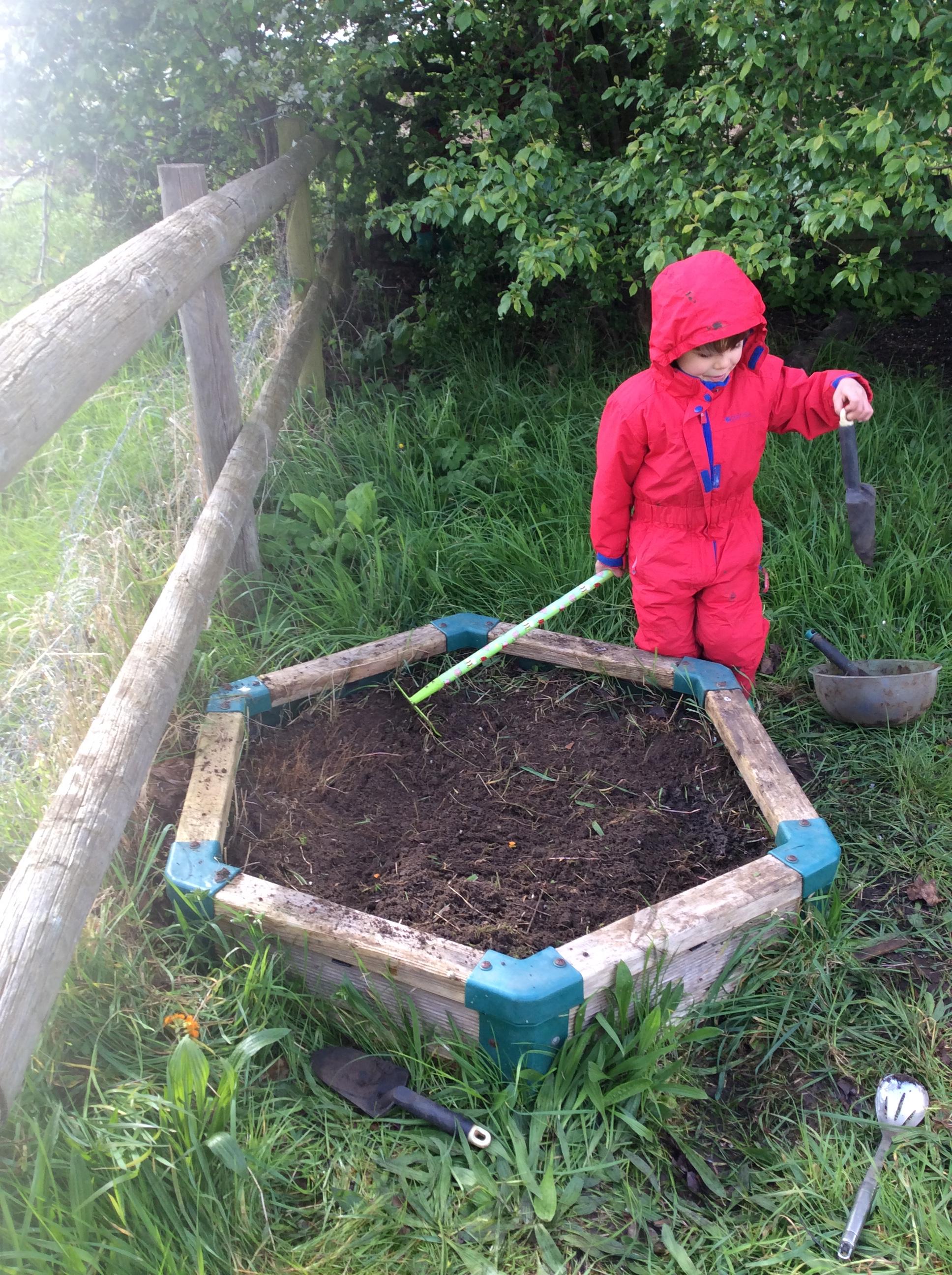 This term, Acorns have benefited from warmer weather at Forest School. In class, among many other things, we have learned what a plant needs to grow, So, at Forest School, we have planted radish seeds. Our first step was to work together to weed the Forest School planter. Now, we are delighted to see that they have started to grow. Fingers crossed that the snails don't eat them before we do! Our aromatic plants are back, we enjoyed the smell of the thyme, lemon balm and the fennel.