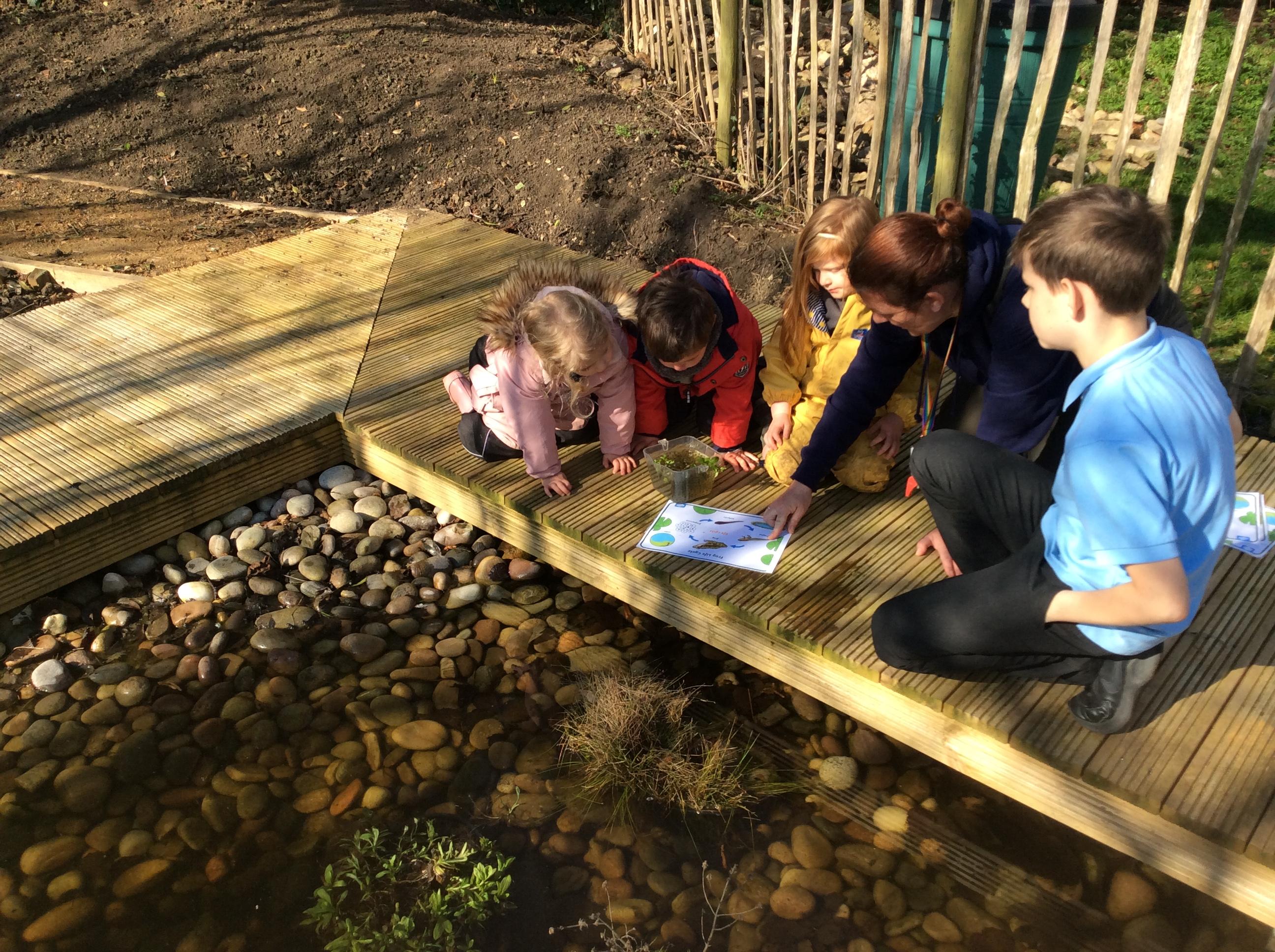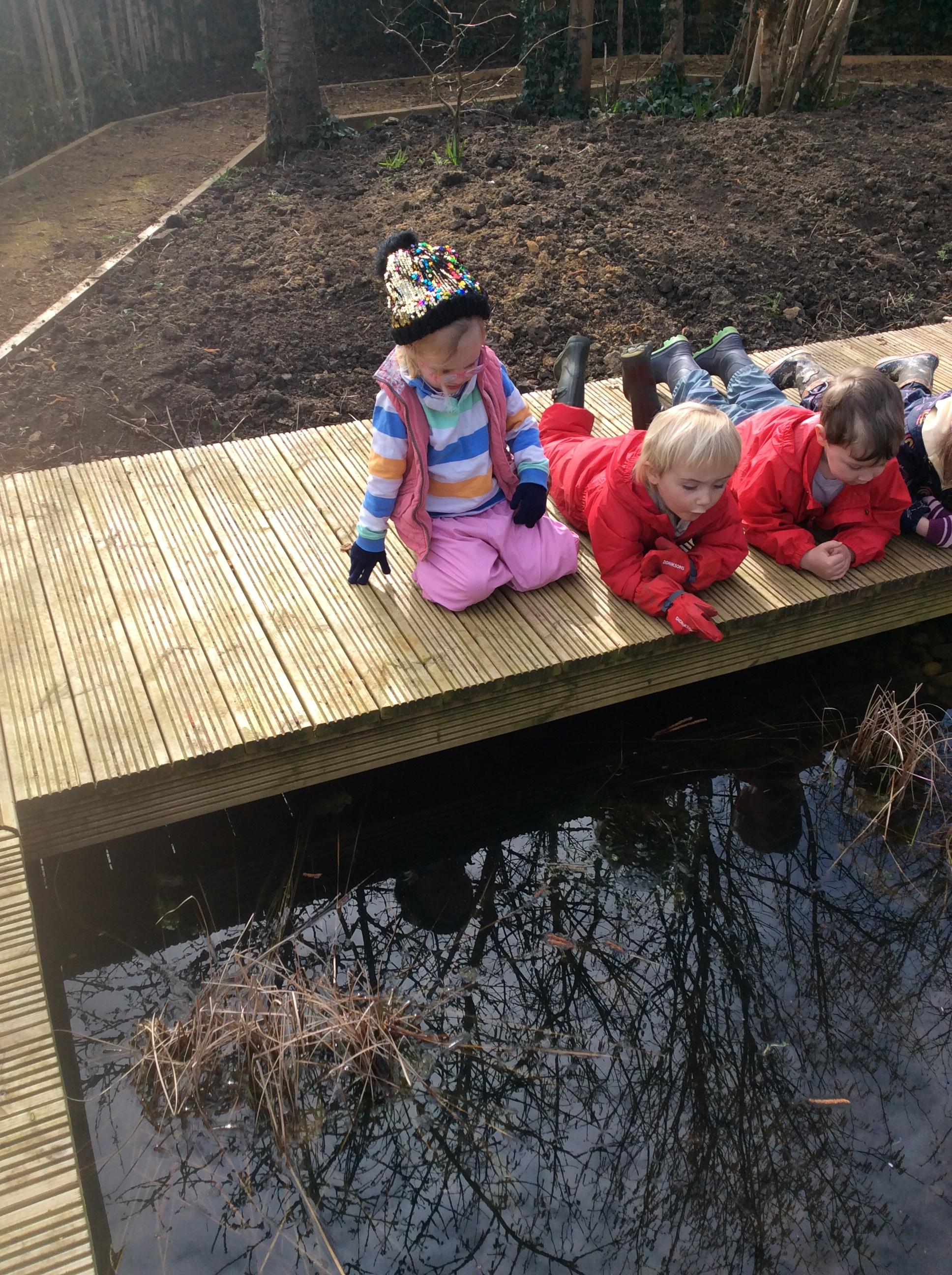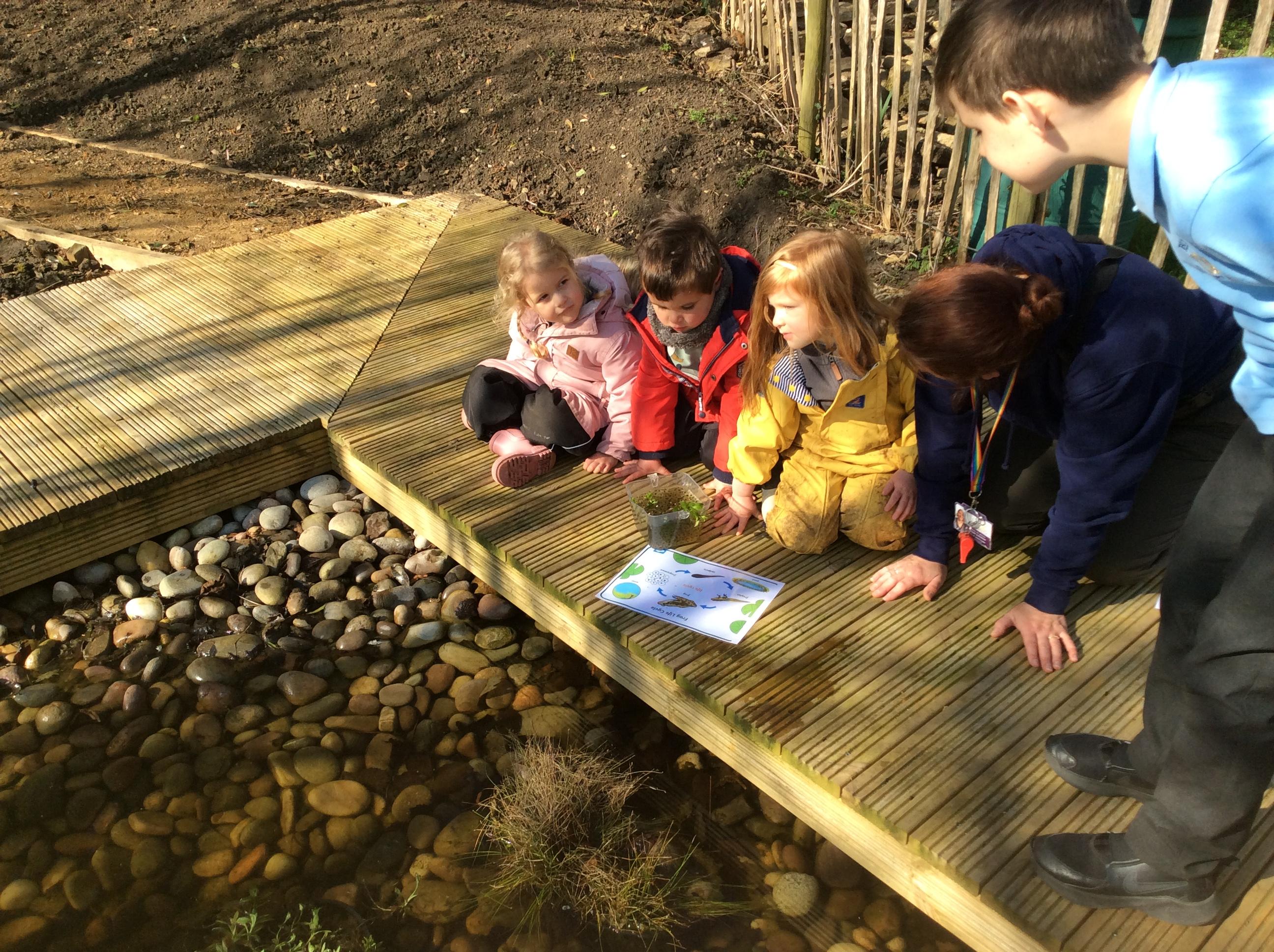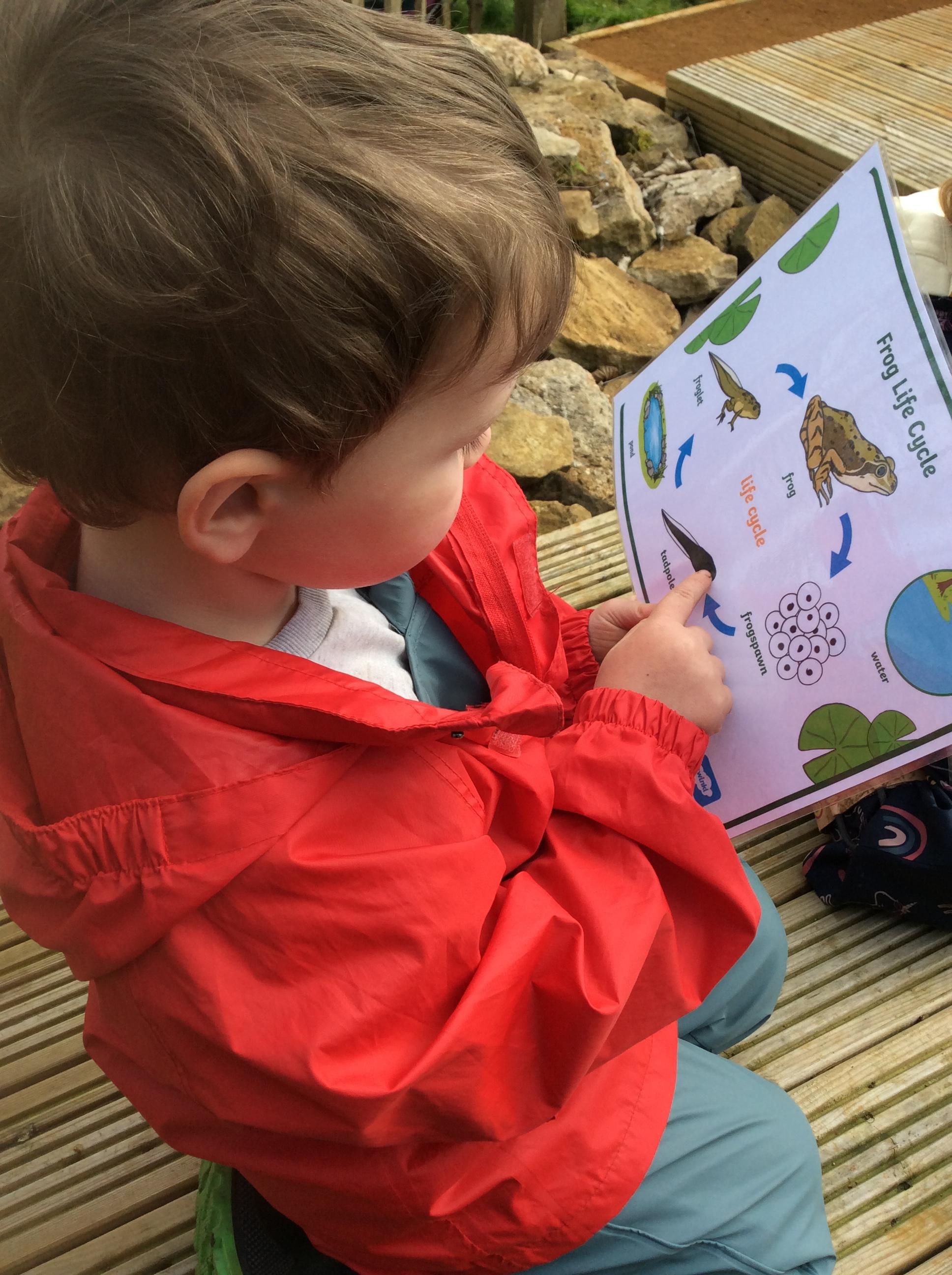 The children were respectful of the frogs and other creatures living in the pond habitat. They avoided touching the water to prevent any disturbance and used their quiet voices so as not to scare the frogs. Unfortunately, the sun wasn’t out, so most of the frogs were hiding.