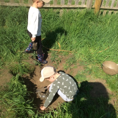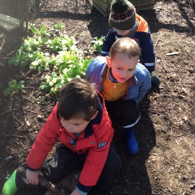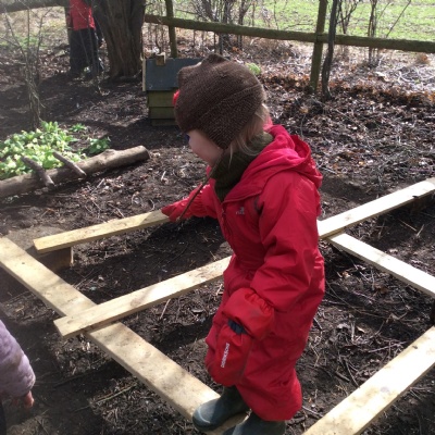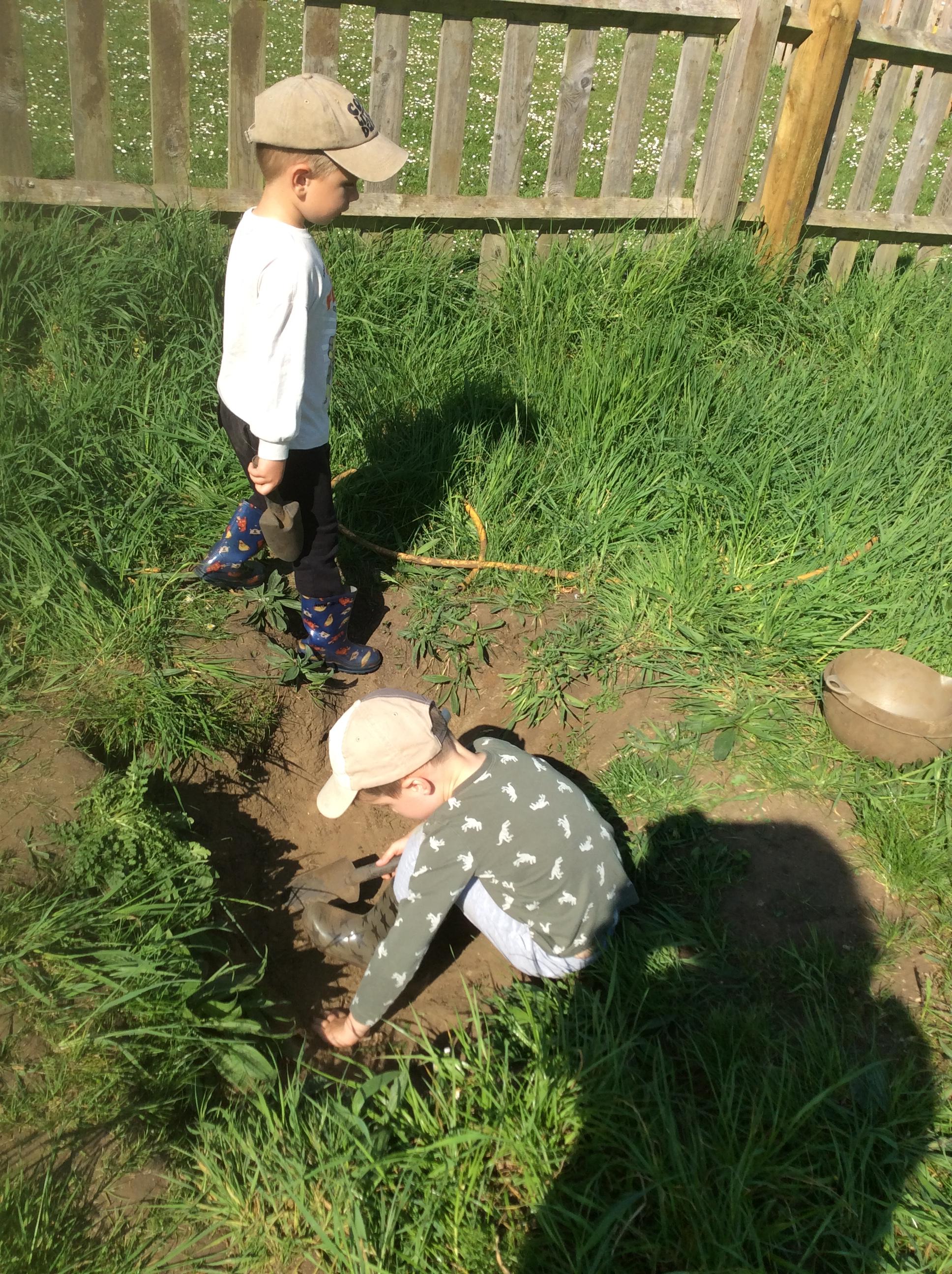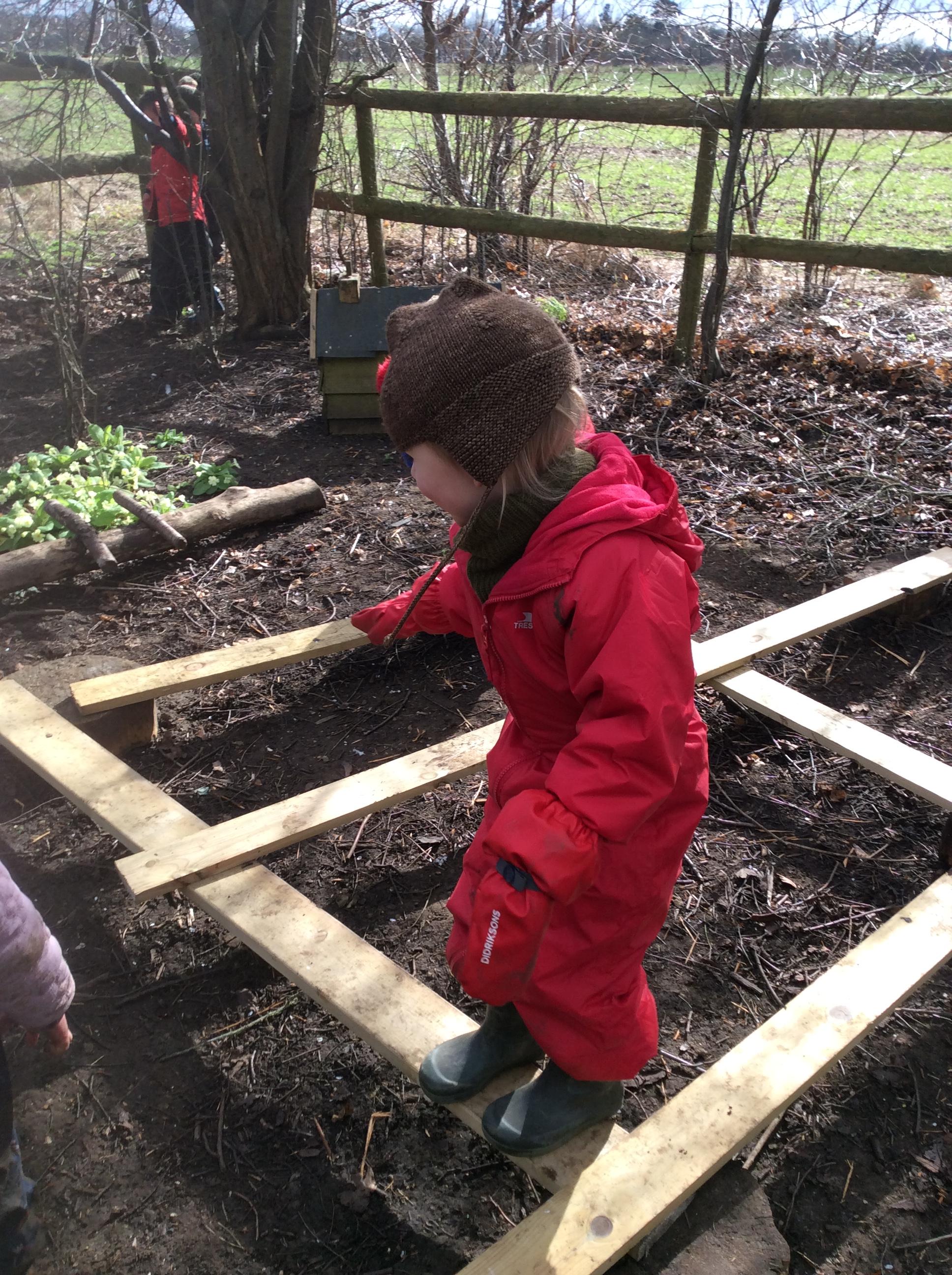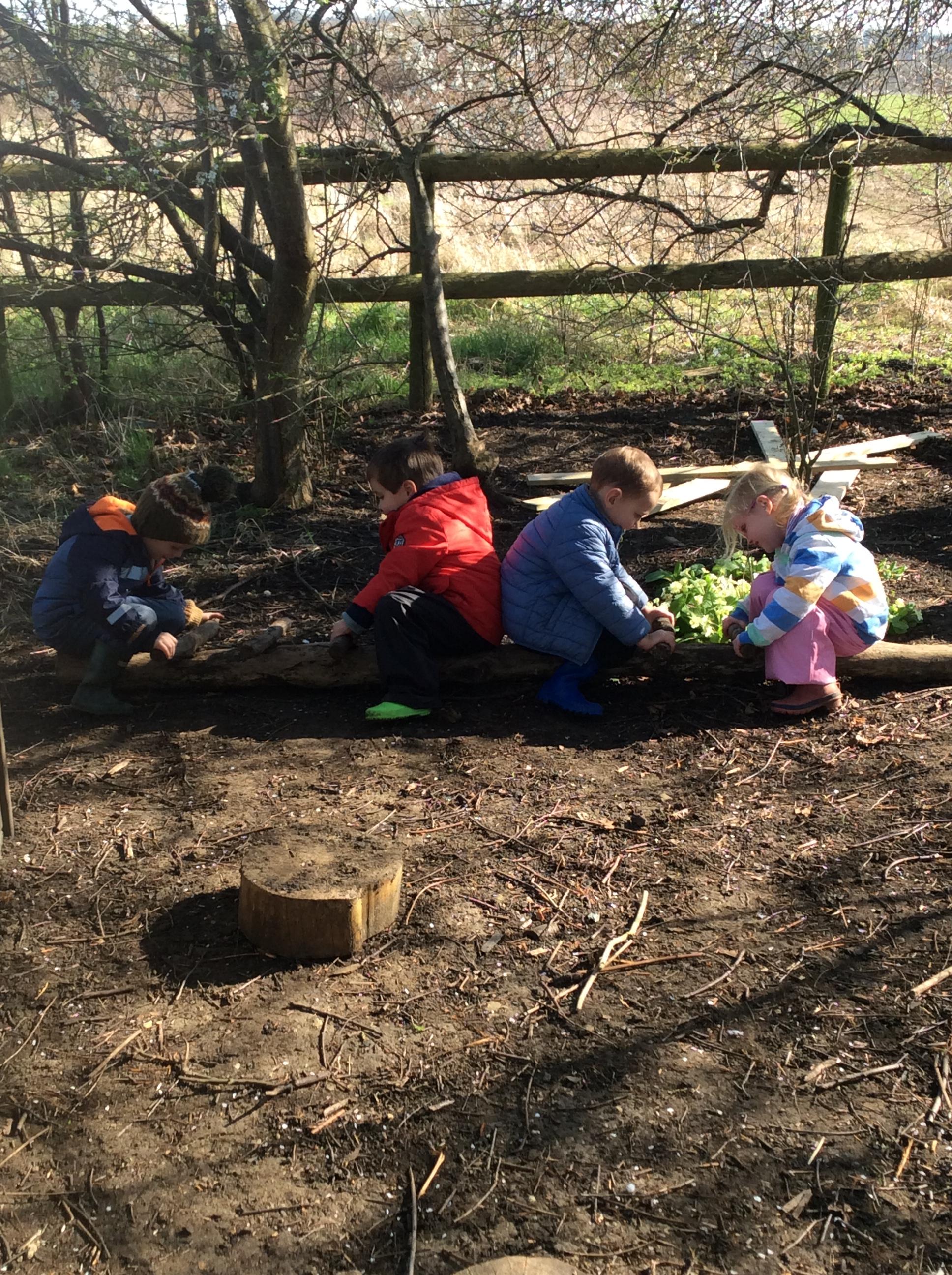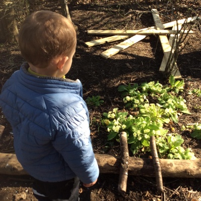 As we did this week, the focus next week will be to continue discovering the allotment. We may also learn how to walk around and avoid crossing the fire area. If it’s still too early to have a fire, we are already training ourselves by using our pretend fire.