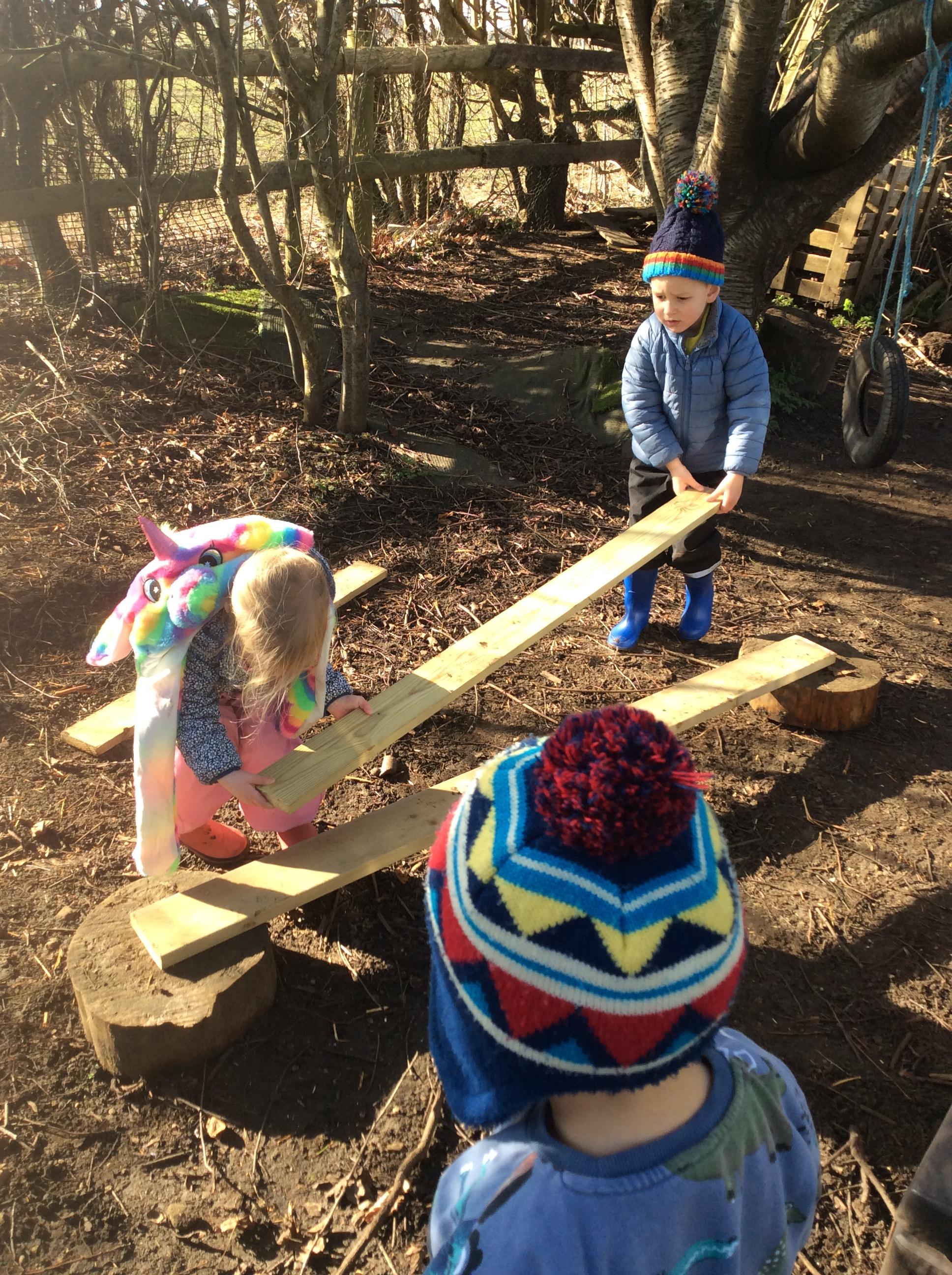 The children have also loved playing with sticks, climbing trees, and building dens.