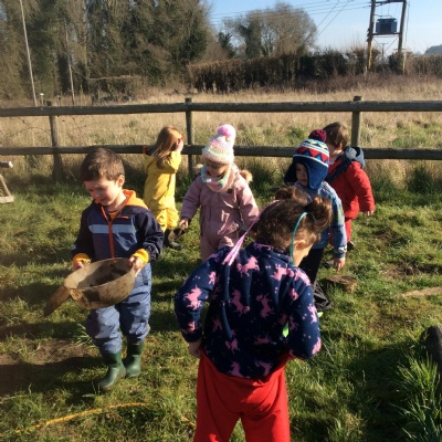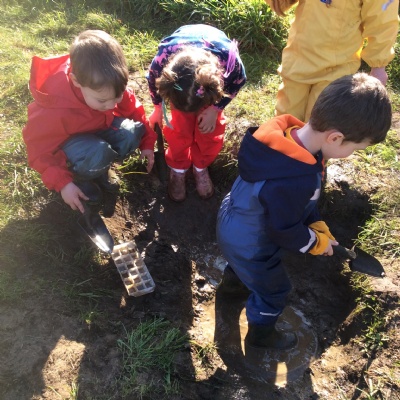 On Thursday, for their first session, Little Acorns were very lucky to be greeted by fantastic sunshine. They met "Carotte," our Forest School mascot, and I think Carotte has already charmed them (as she always does!). The adults were really impressed by the youngest children of Buckland. They were a bit shy (which is always the case during our first session), but they were fantastic explorers. They quickly and independently got changed, but most importantly, they were kind and supportive of each other. They worked together to build an obstacle course or added water to make sticky mud in the mud hole. They took turn to jump on it ! We are so proud of them.