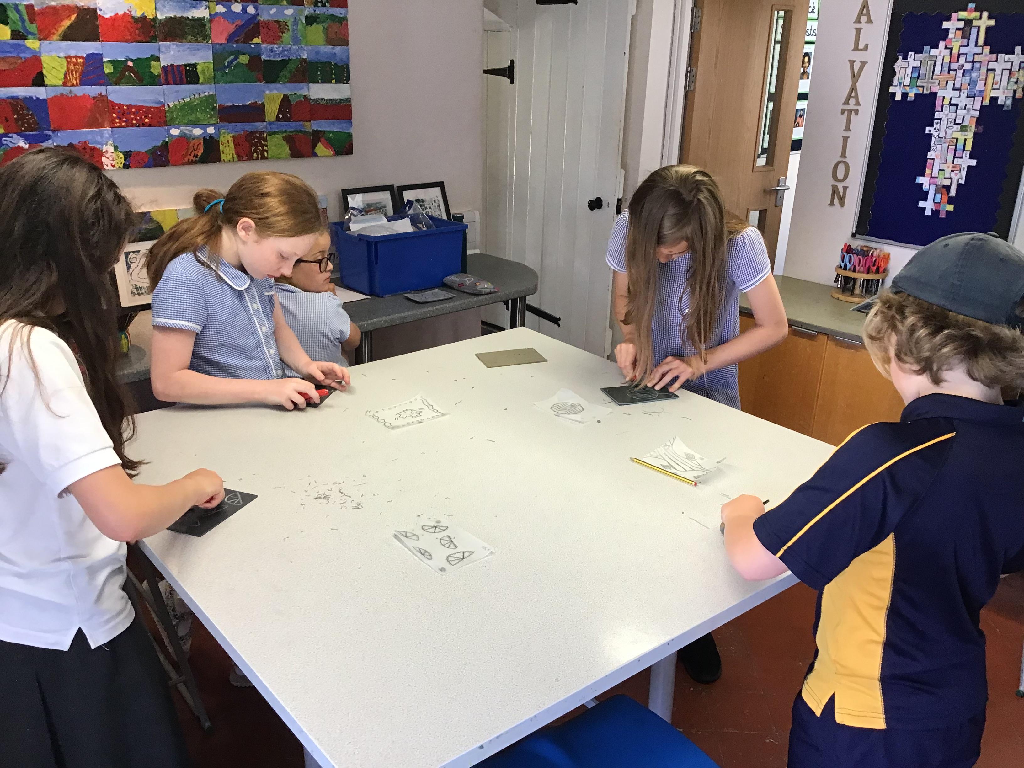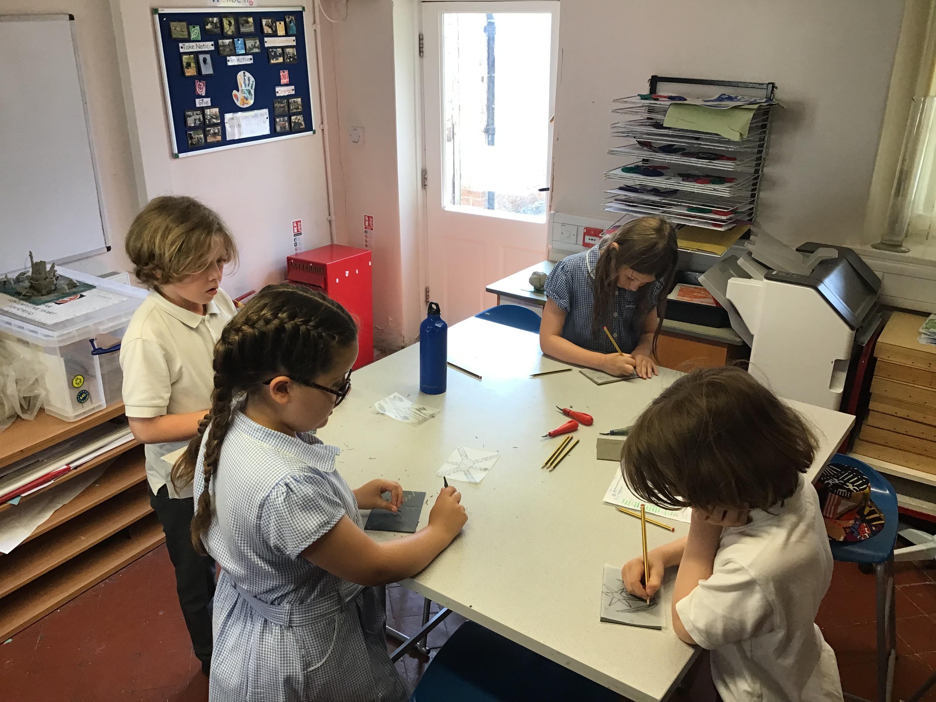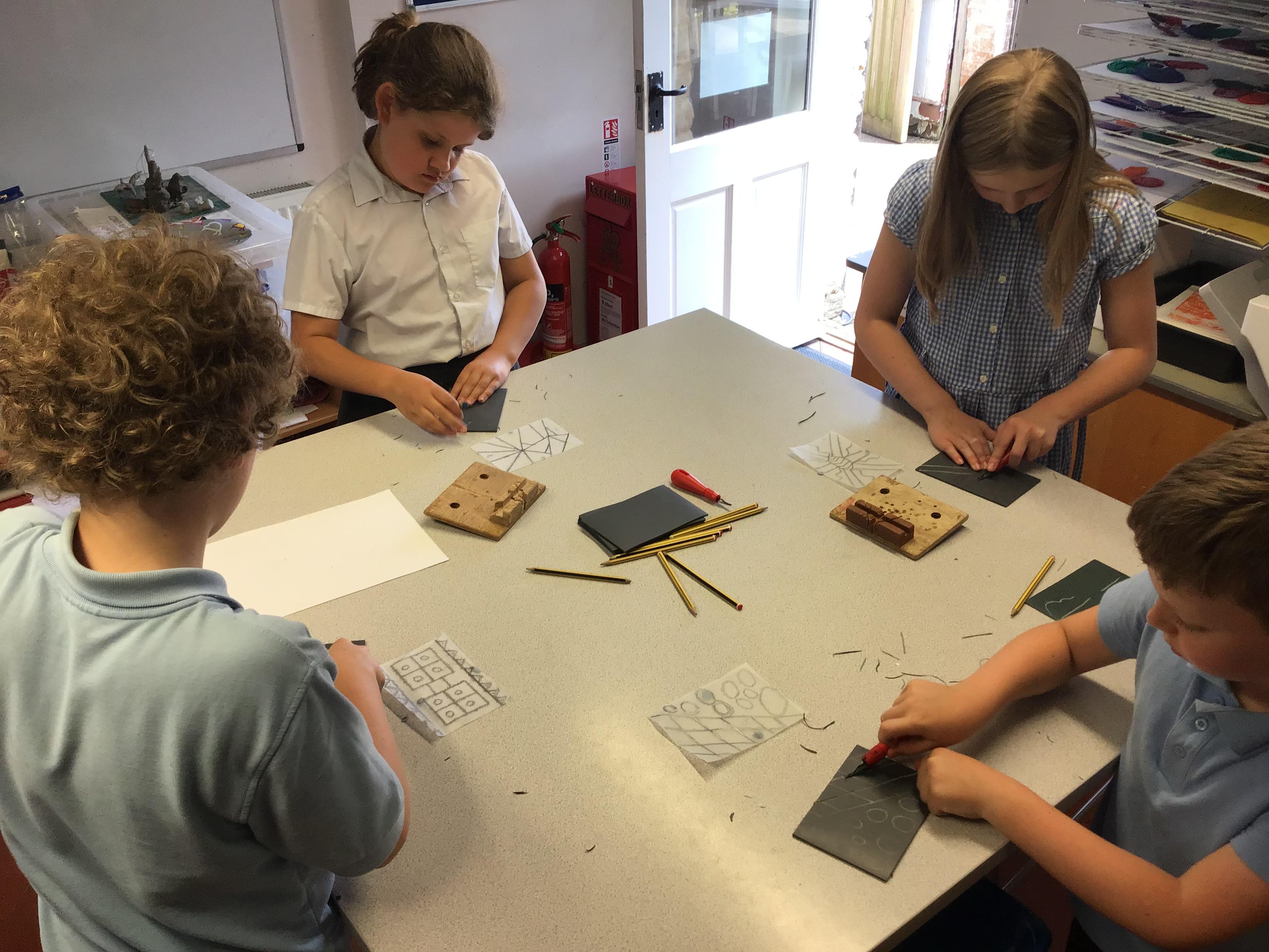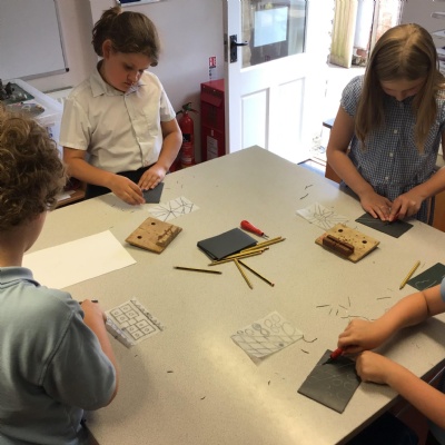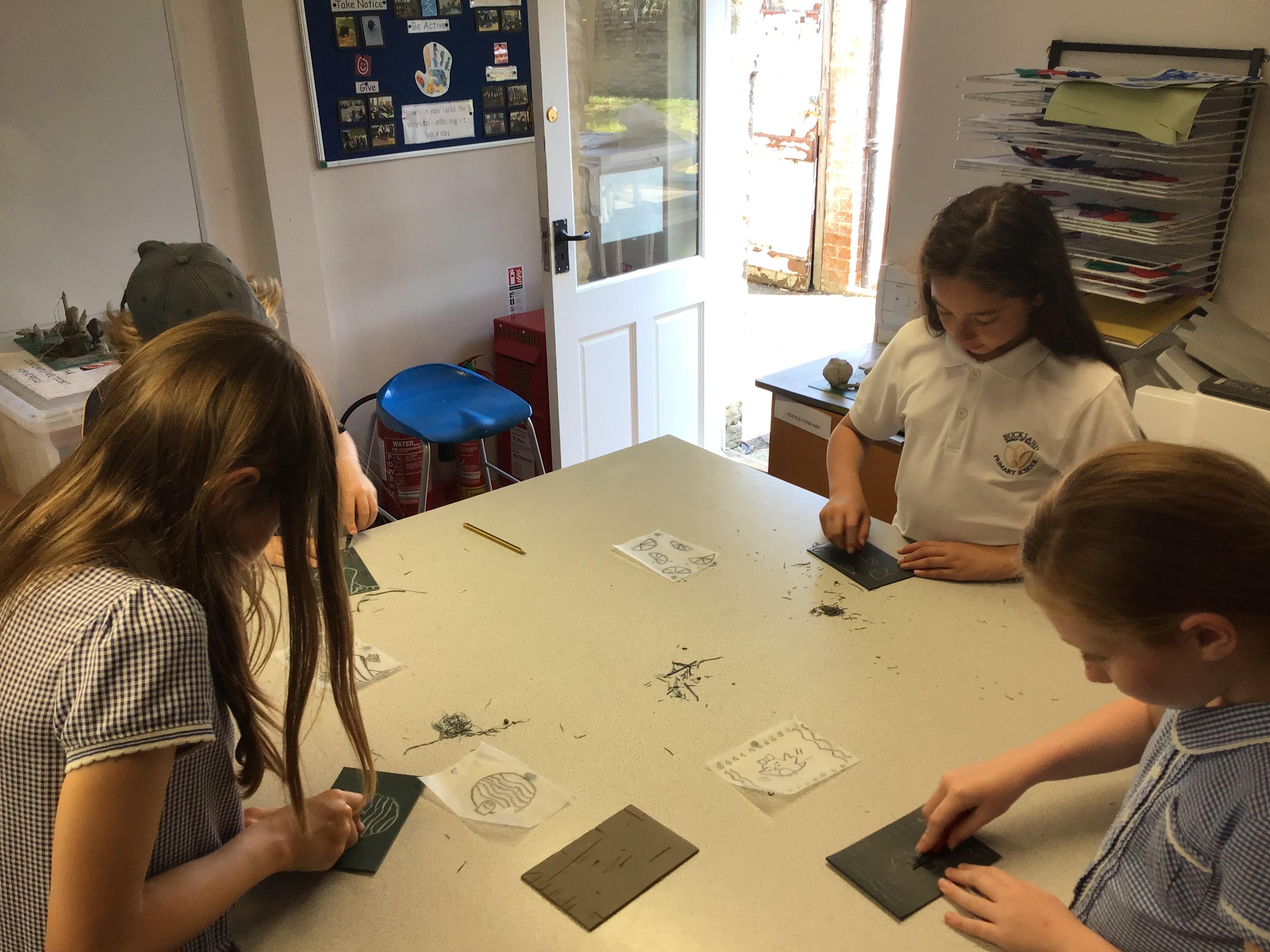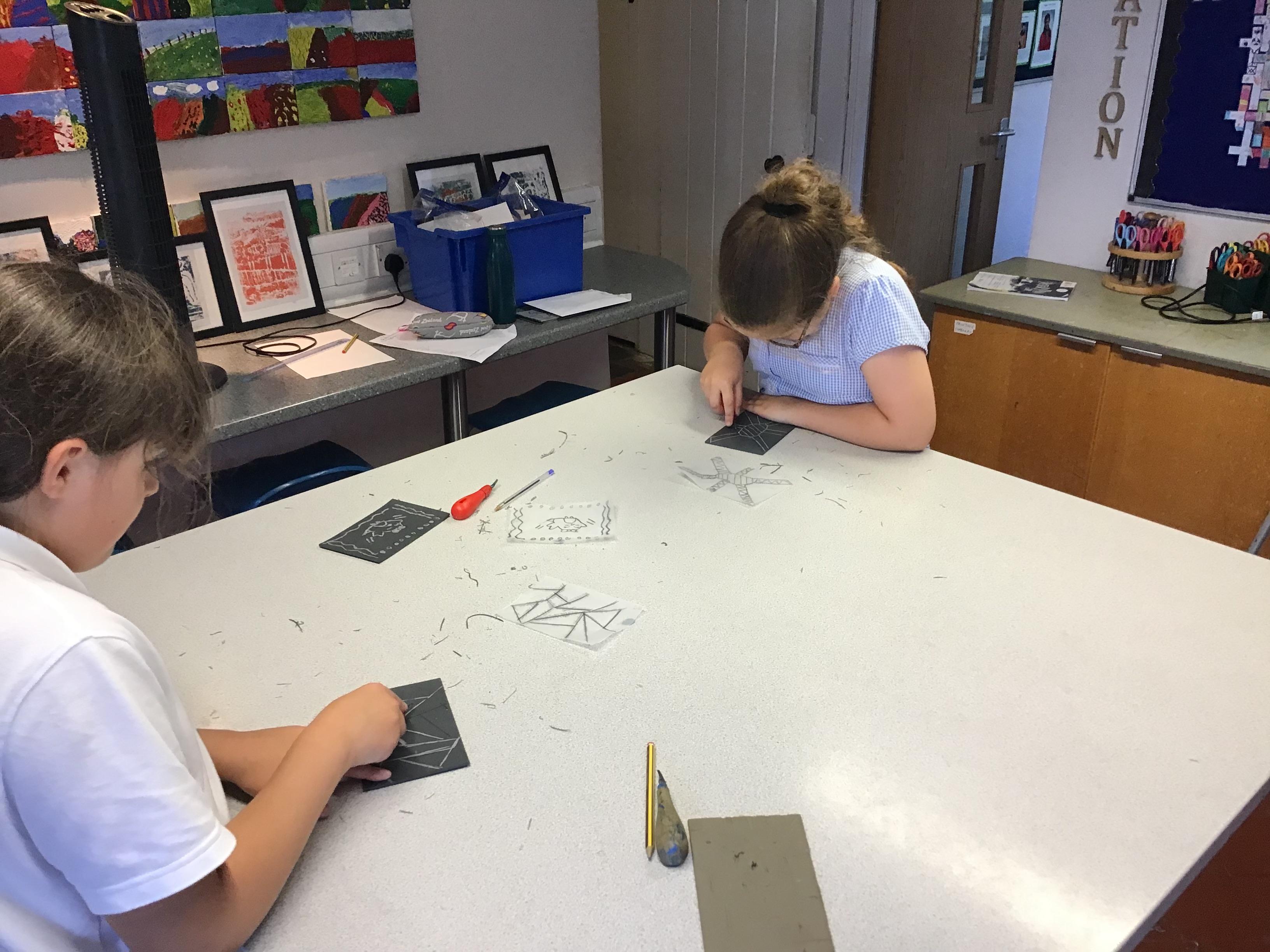 Oak class have been inspired by William Morris to create their own printing design. Each child will have their own unique design transferred onto tracing paper before applying this to their printing material. The class have been very mature using the lino cutting tools.
