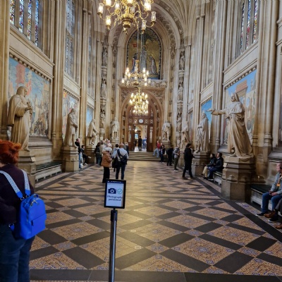 After having lunch outside the Houses of Parliament, we were shown inside. On our tour, the children walked through the House of Commons and House of Lords as well as enter Westminster Hall, where the Queen’s coffin lay a couple of years ago. We also went into The Robing Room, a room never seen on TV before. During our tour, the children were able to see paintings and statues of former Kings and Queens on the wall and the Magna Carta. Pictures are forbidden in many areas so hopefully the children can share with you what it was like to walk through Parliament. Their knowledge impressed both the tour guides and adults on the trip.