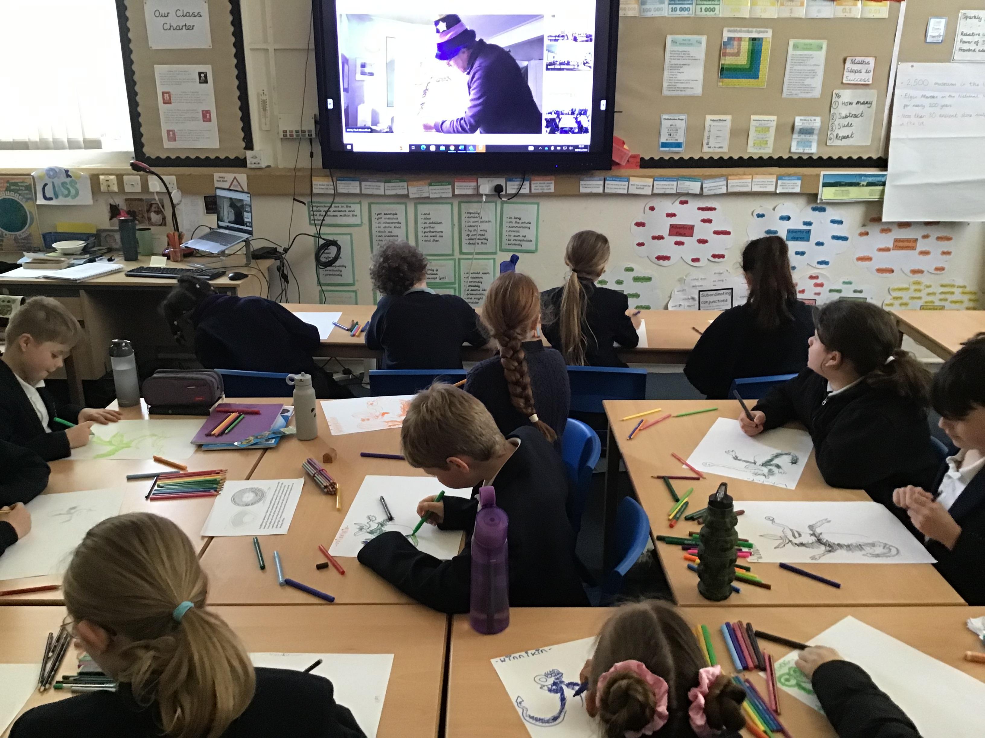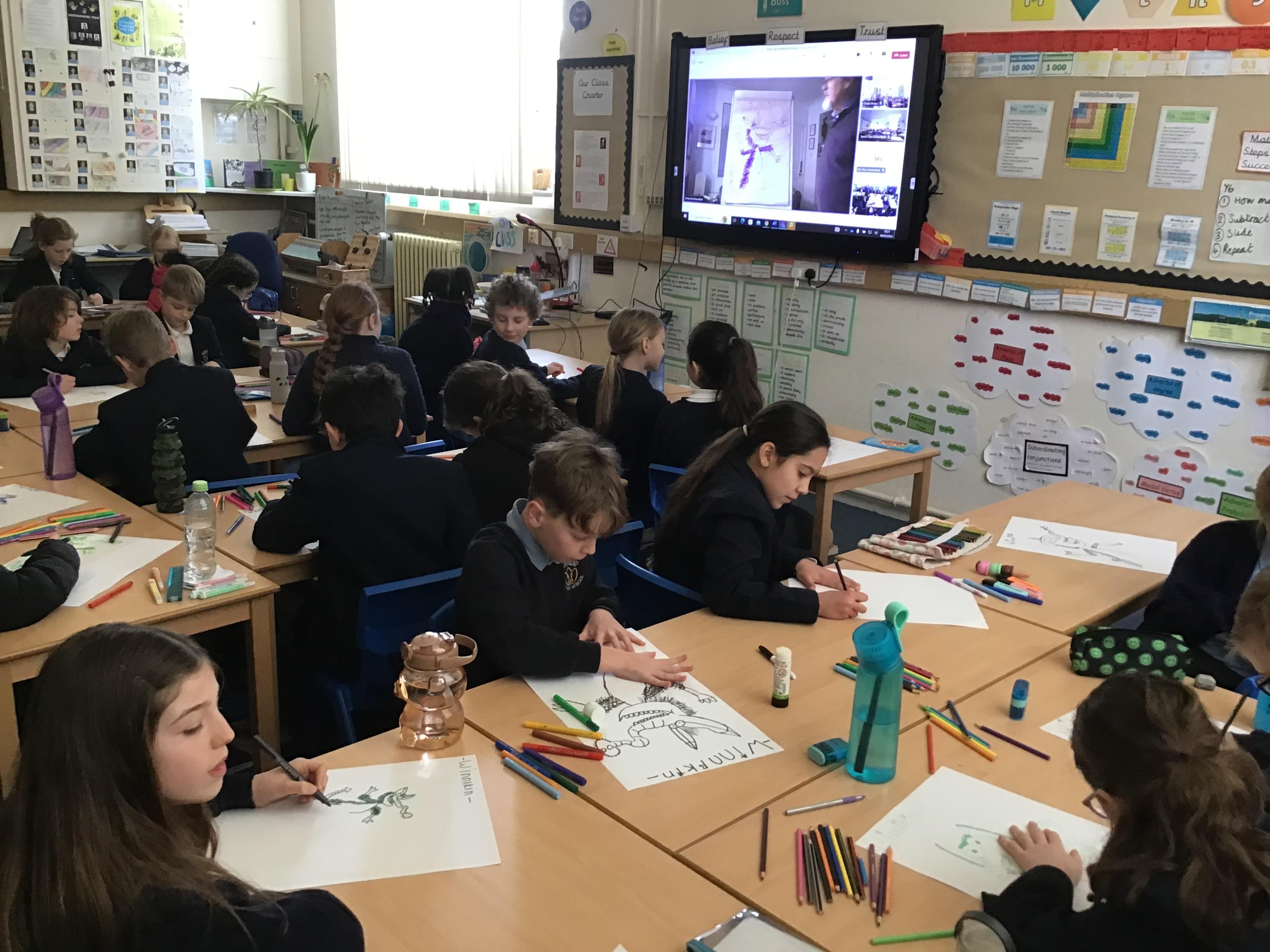 As part of World Book Day, the whole school took part in a brilliant workshop with the illustrator Korky Paul. Korky drew characters from Winnie the Witch in different moods. The children drew along with him as he talked about decisions he makes when drawing, how his ideas come to him and how he doesn't know what the end result will look like when he starts - it's all part of the fun of using your imagination and enjoying the creative process. The children thoroughly enjoyed their morning session with him. Thank you to FOBS for funding the workshop.