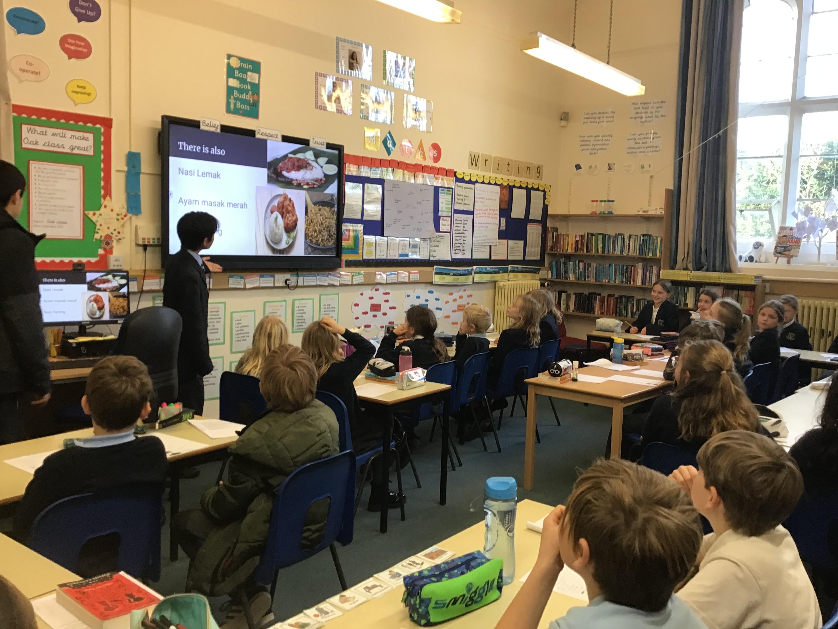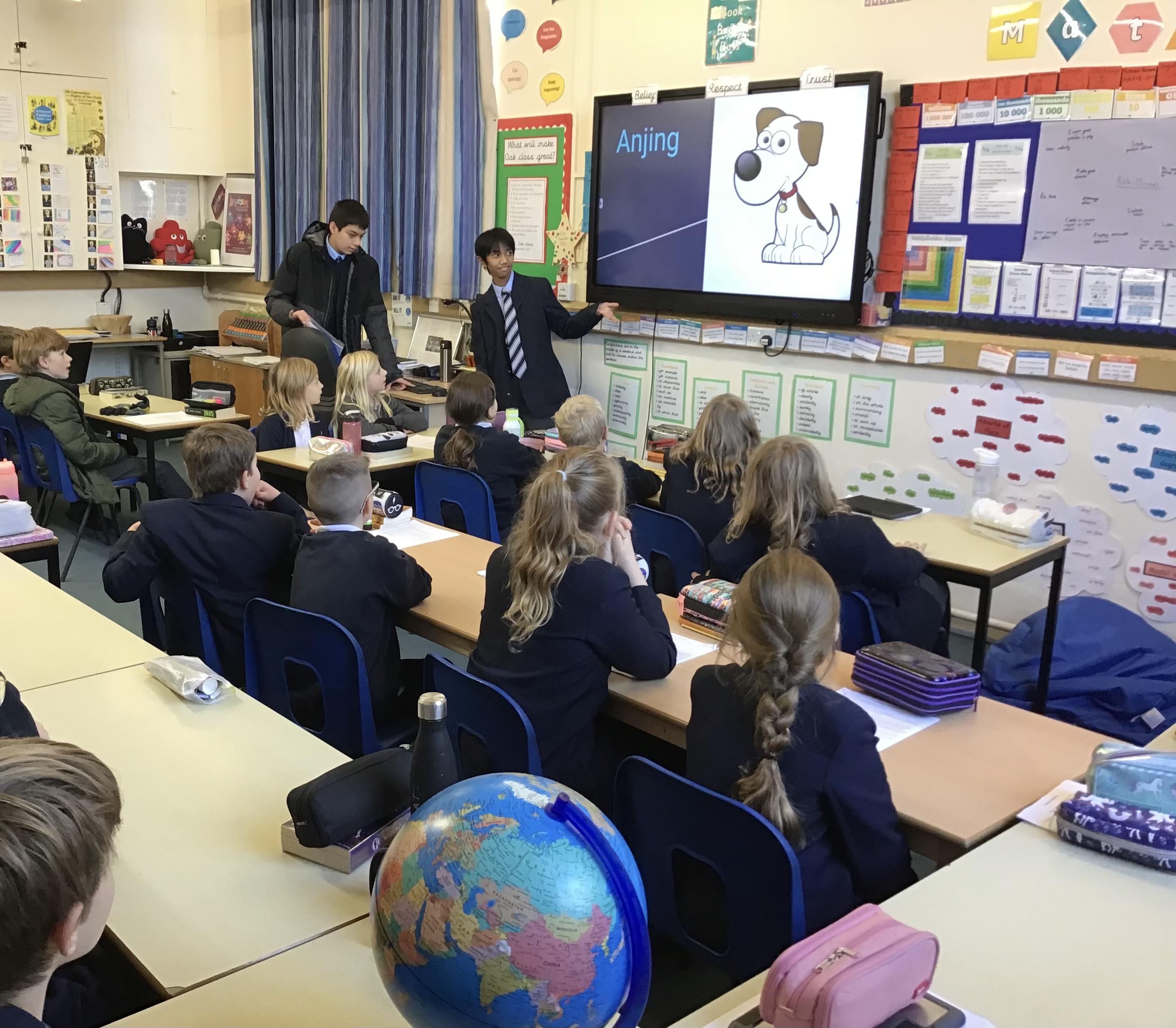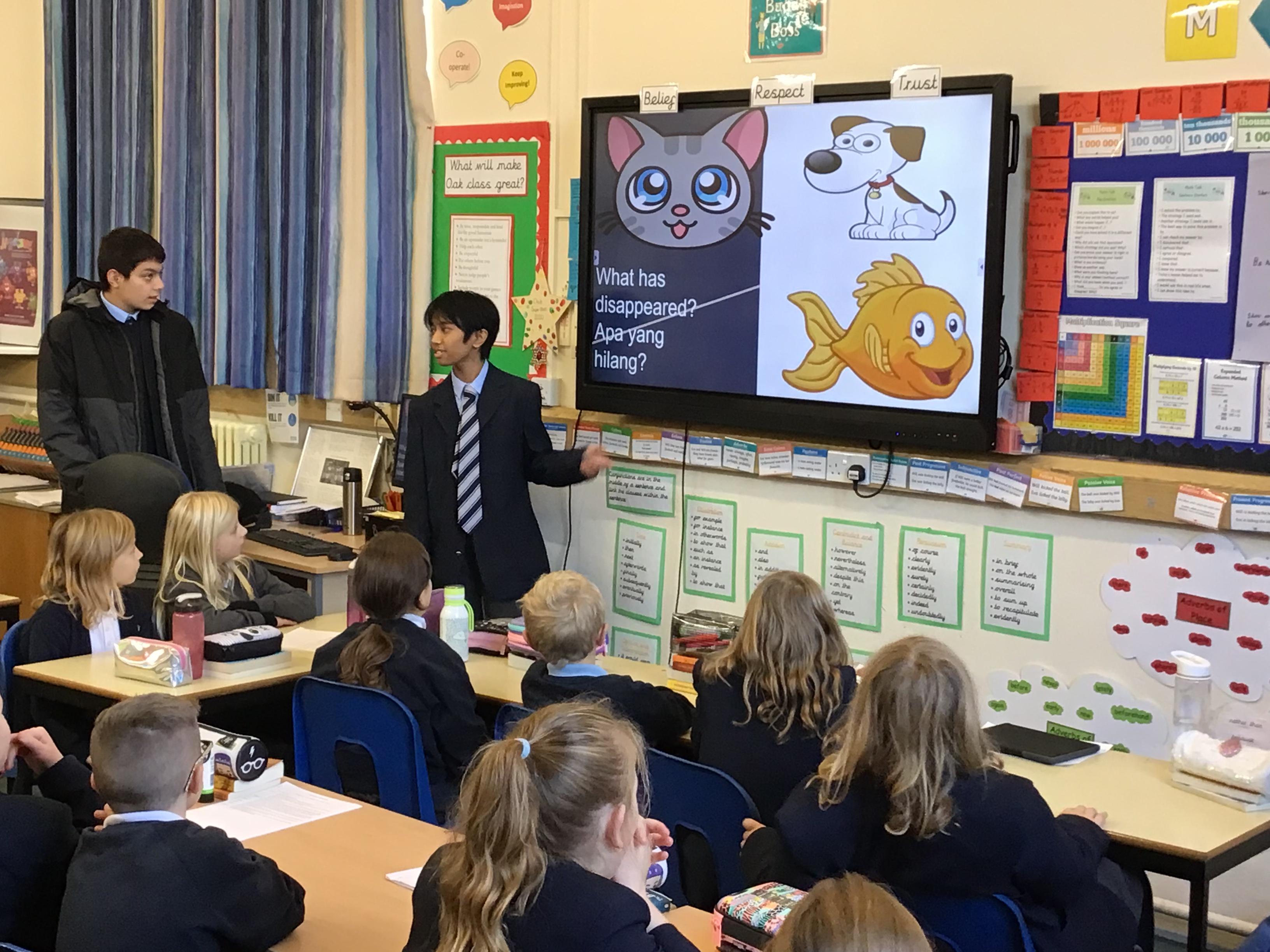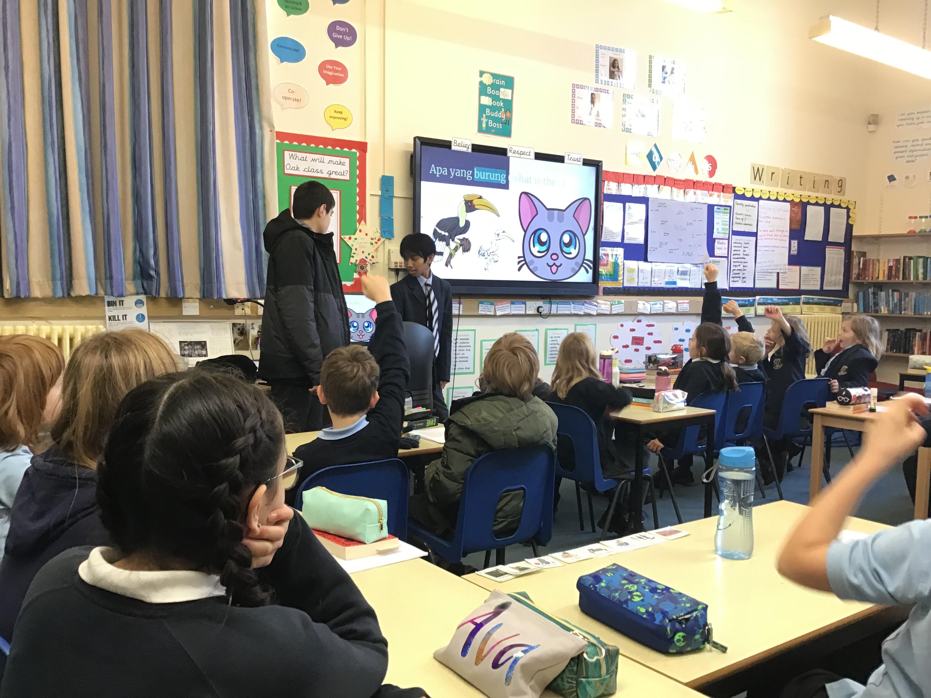 Oak class had a fantastic languages lesson led by two students from Abingdon School. The whole class learnt how to say simple phrases in Malay with lots of success.