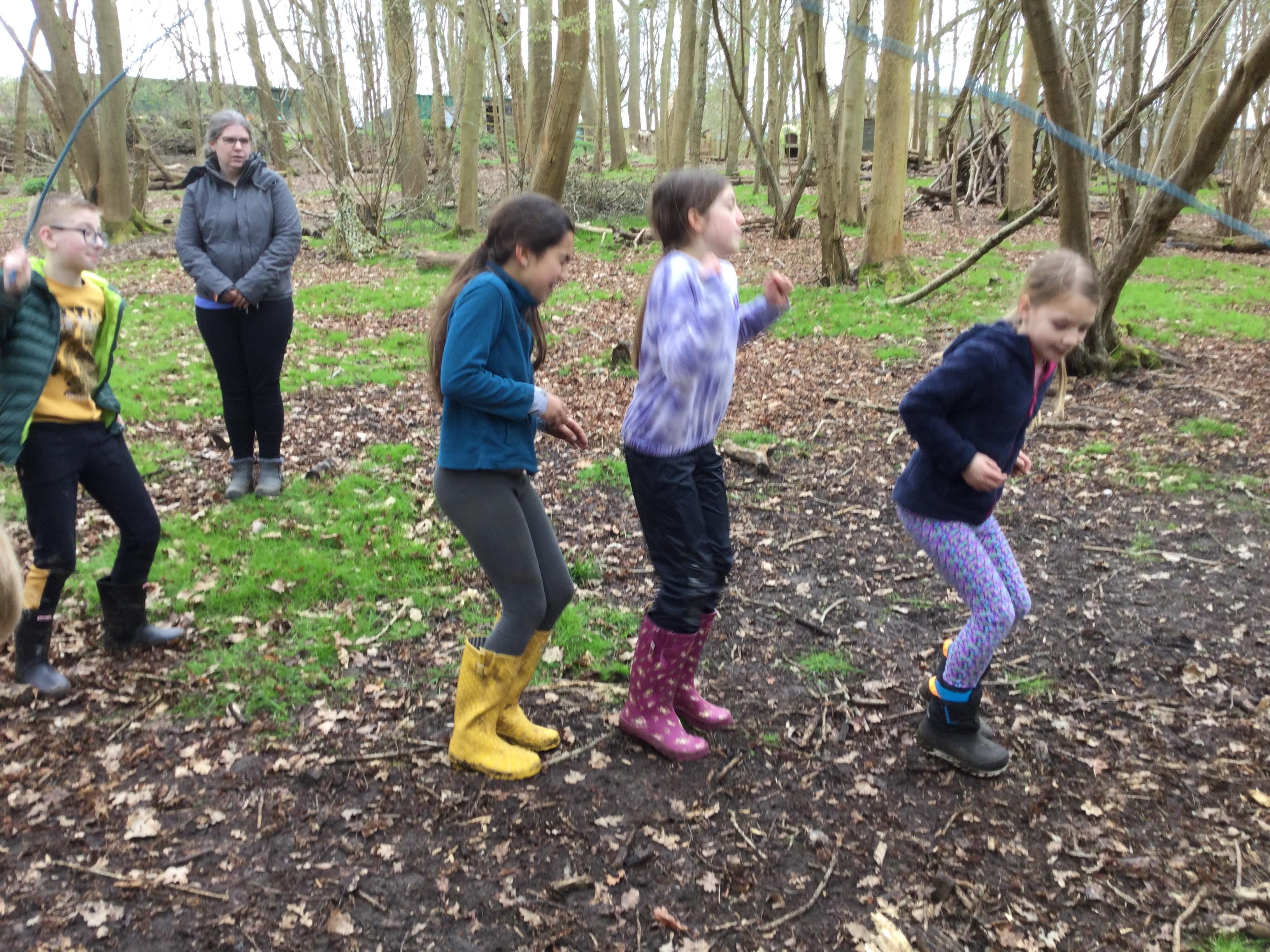 On the first day, We played fun games to build teamwork. We played hide and seek in the forest, with the children hiding first and then it was the turn of the adults to have their revenge! Then we tried jumping rope in two teams of seven children. On paper, the game seemed great, but soon we discovered that jumping rope with wellies is pretty difficult and not so fun. Then we played "Don't Wake the Forest Monster" and "Running Dragons".