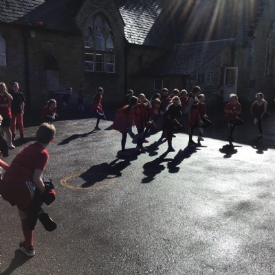 It was so nice to see the children cheering their friends back into school at the end - excellent teamwork!