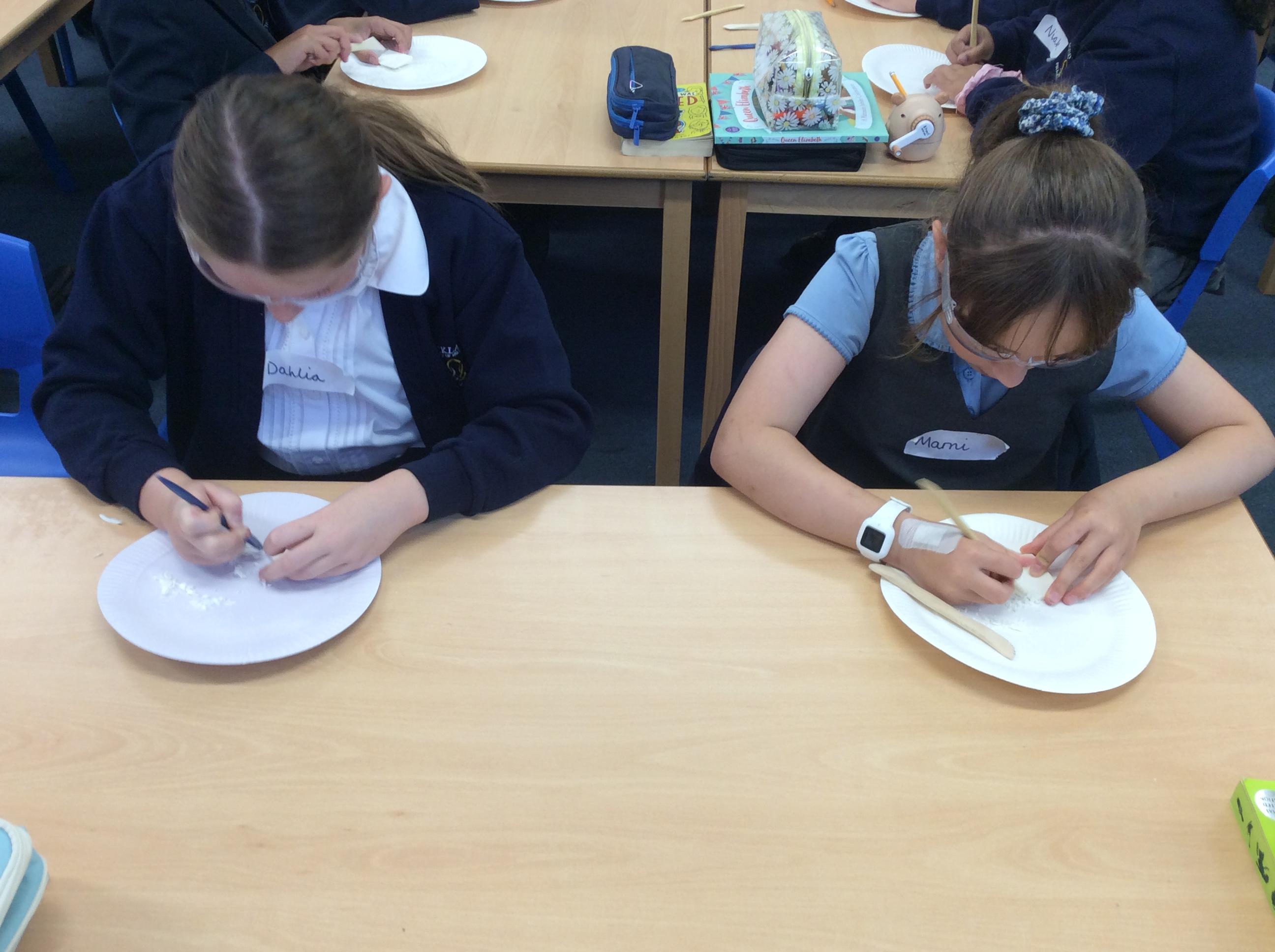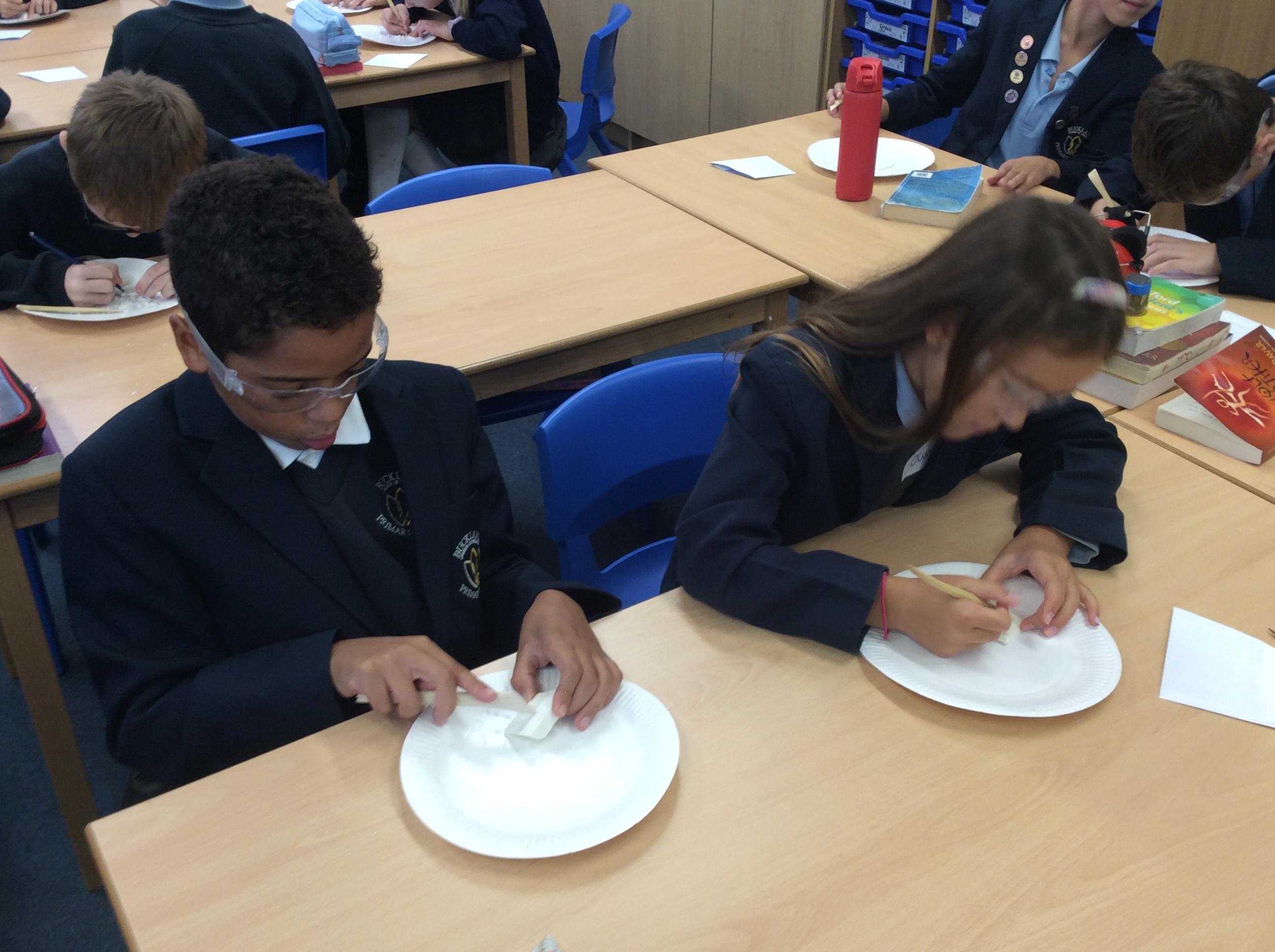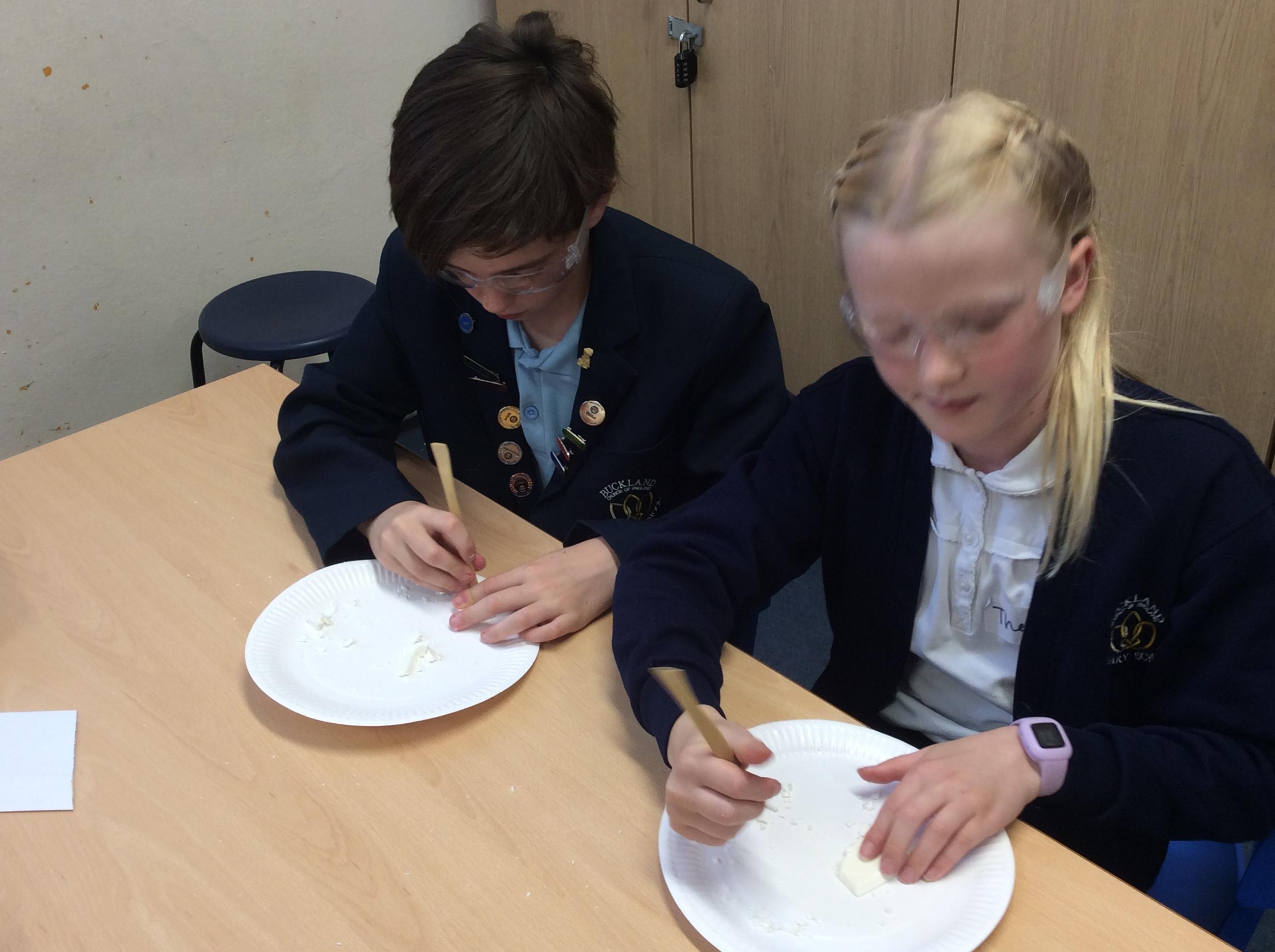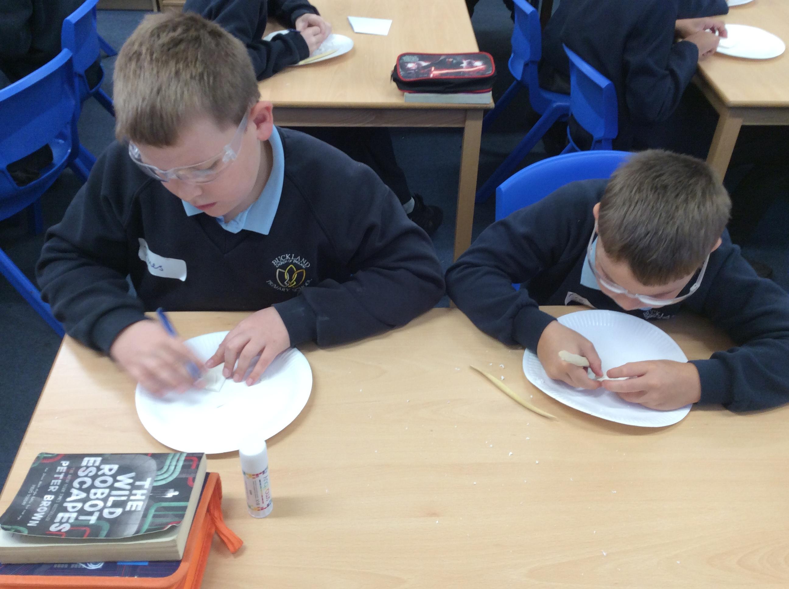 Back in class, Oak found out about the importance of flint knapping during this time and learnt what tools they would use to do it. The children were then given a piece of hard soap to have a go at knapping into a worked flint sharp…e.g. arrow head/scrapper.