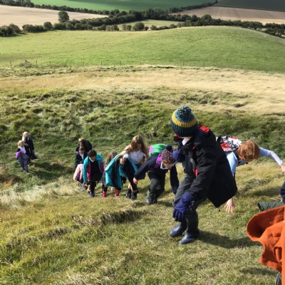 We visited White Horse Hill, Uffington Castle and Wayland Smithy as part of our Stone Age themed work. The children imagined what it was like to live on these prehistoric sites.
